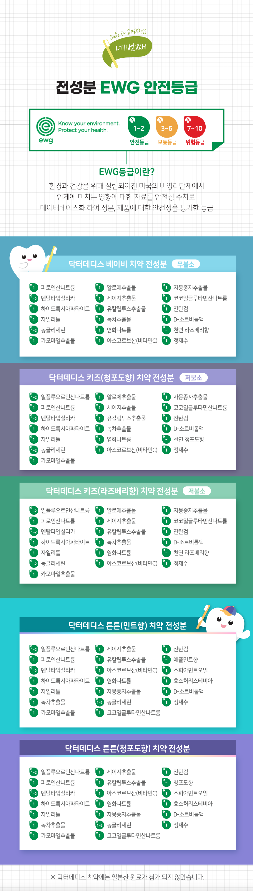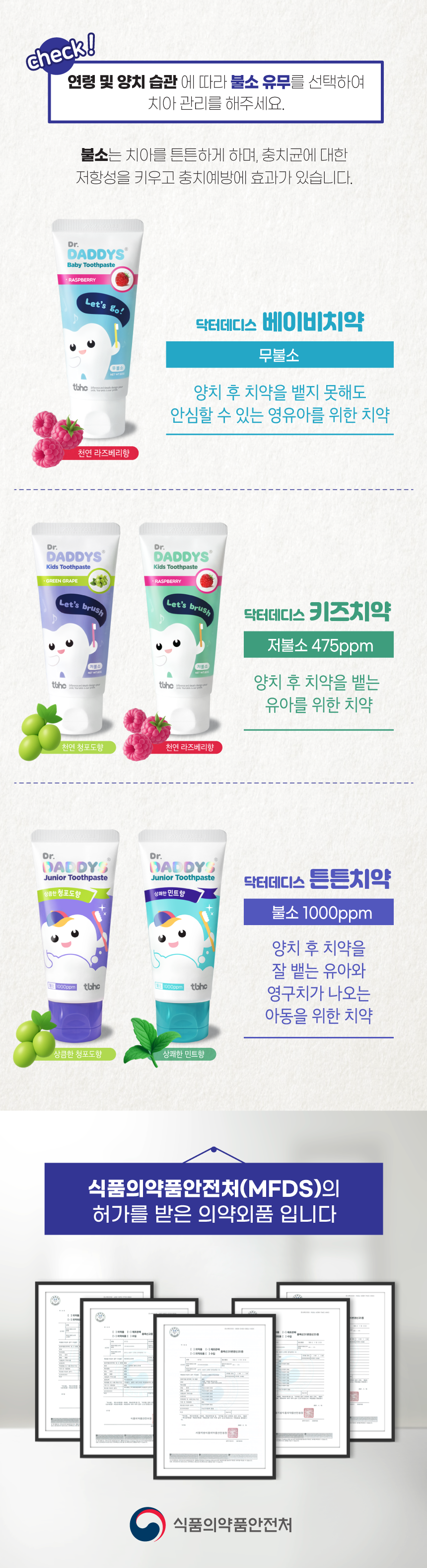 [닥터데디스] 어린이치약 60g 택1 [아기 무불소 / 유아 저불소 / 초등 불소]