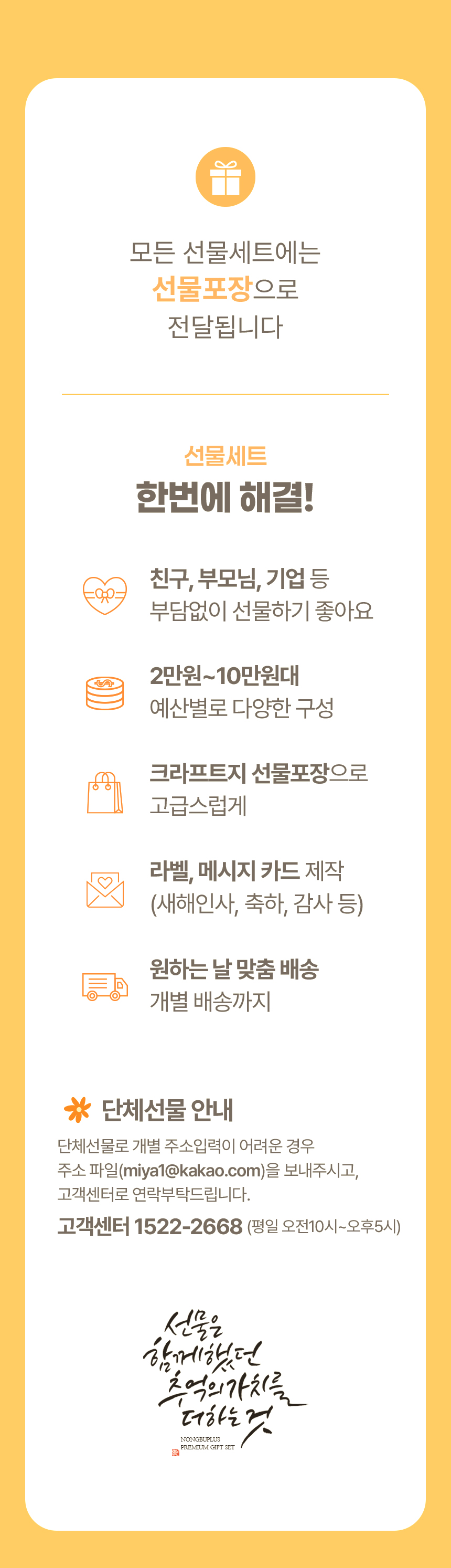 - 신선식품의 경우 재판매가 불가능한 제품 특성상 단순변심 및 개인적 입맛 차이로 인한 반품은 불가능하며 제품 수령 후 문제가 있는 경우 이상부분 사진 촬영하여 수령하신 날짜 기준 2일 이내 연락해주셔야합니다.(기일은 업체별 상이할 수 있으니 수령즉시 연락 부탁드리겠습니다.)