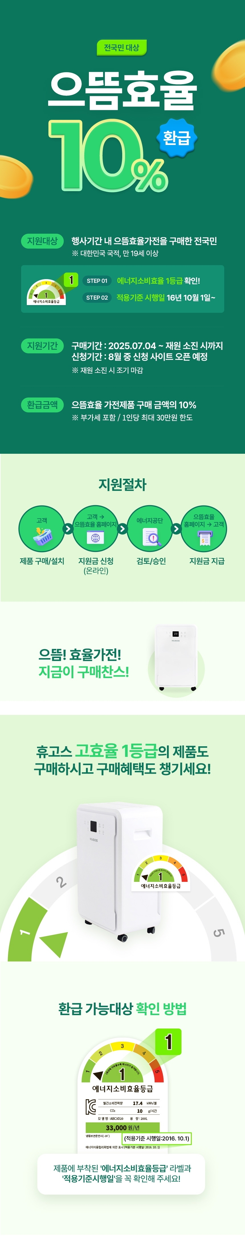 • 에너지소비효율등급 (「에너지이용 합리화법」에 따른 에너지소비효율등급 표시대상 기자재에 한함)