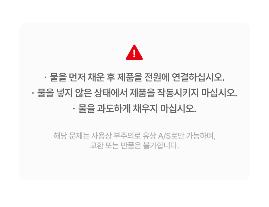 * 제품 수령일로부터 7일 초과 및 상품 가치 훼손된 경우 교환/반품이 불가합니다. * 사용한 후에는 교환/반품이 불가하며 A/S만 가능합니다.
