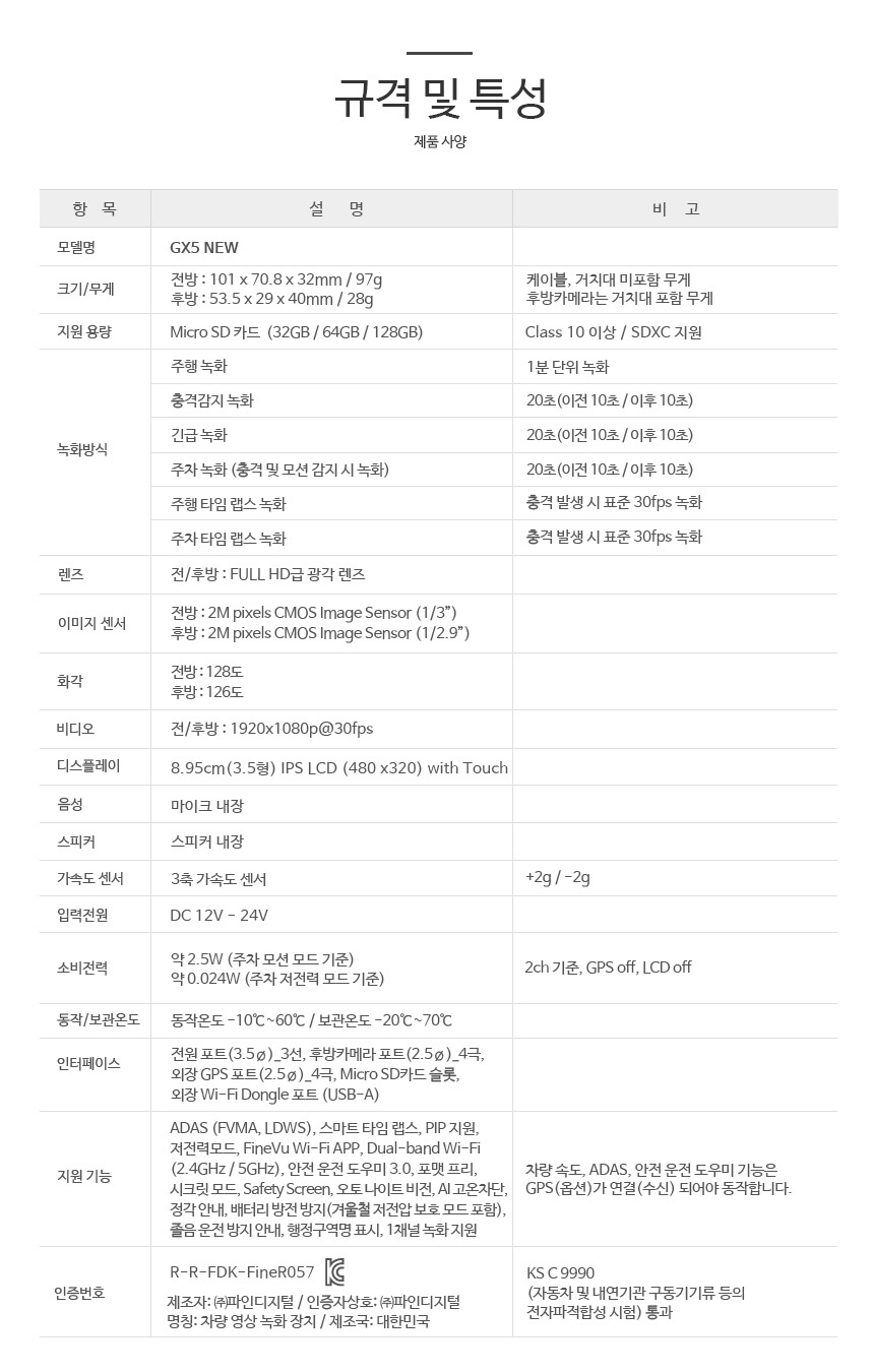 [파인뷰] GX5 New 초저전력 5GHz 2채널 블랙박스 32GB