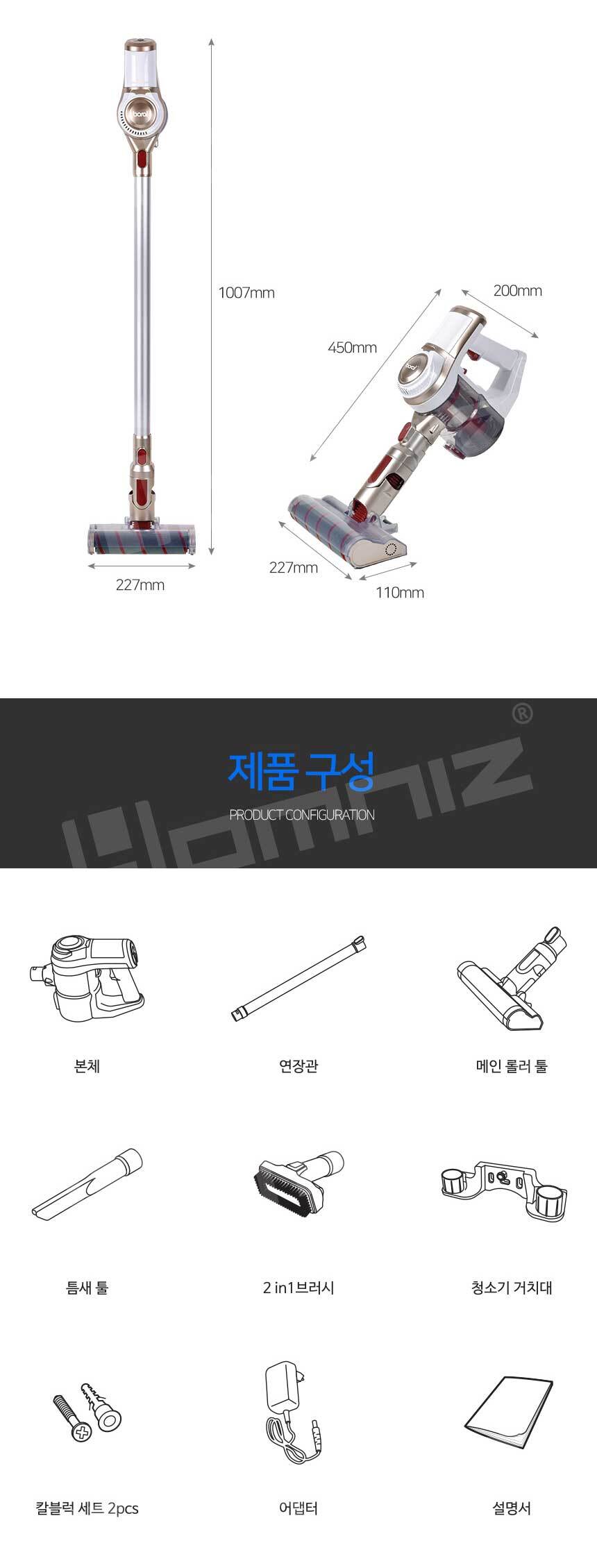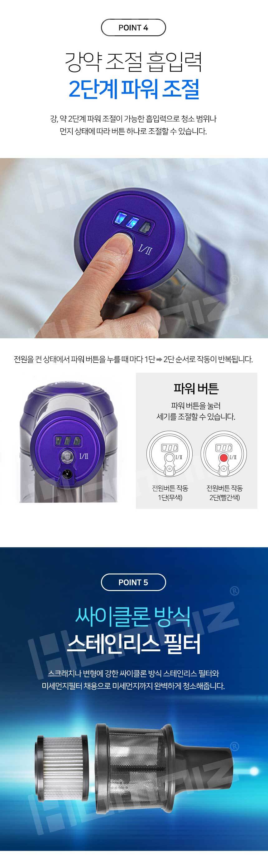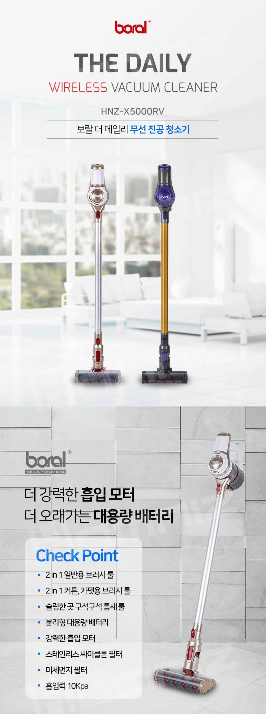 [보랄] 더 데일리 무선 청소기 HNZ-X5000RV (퍼플, 골드)