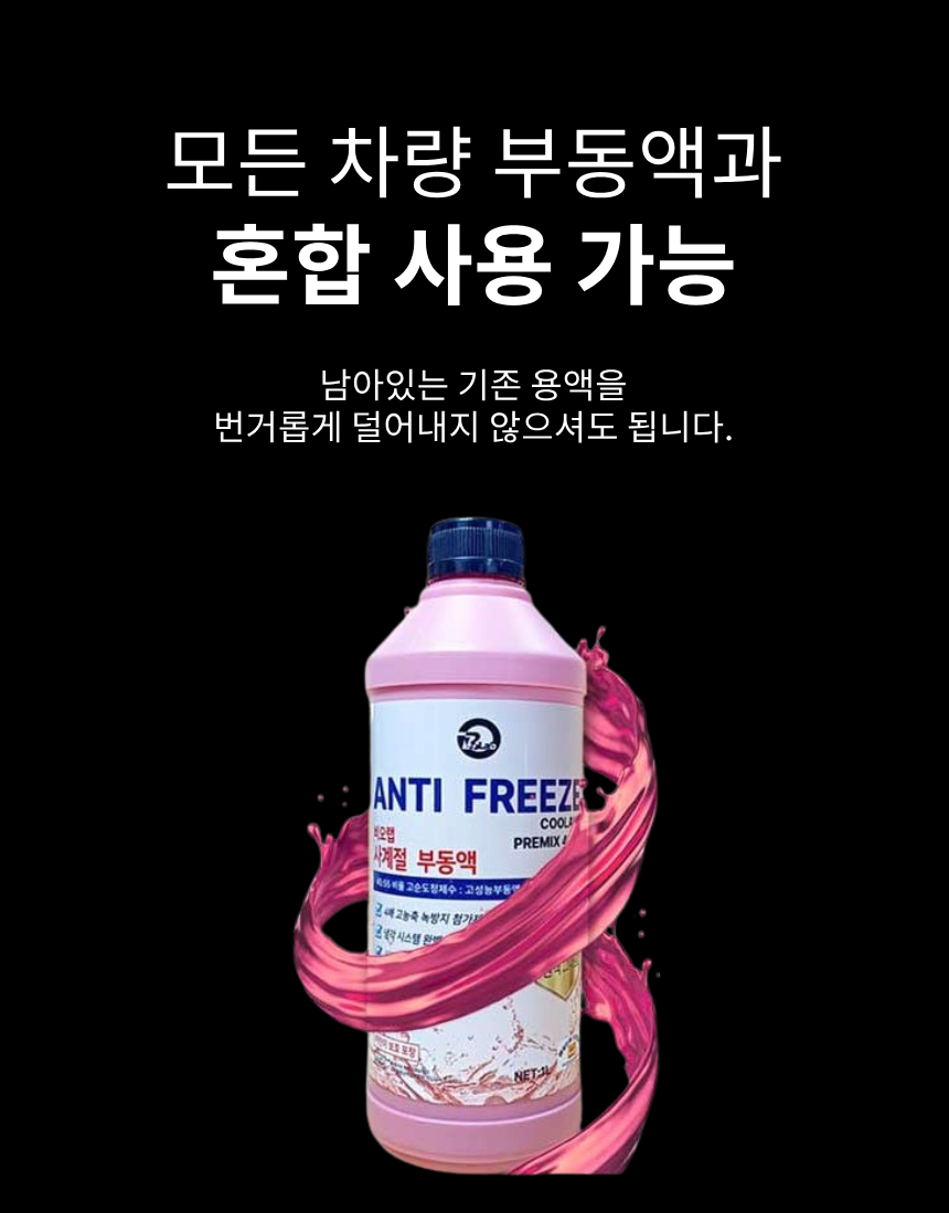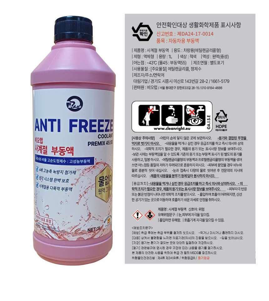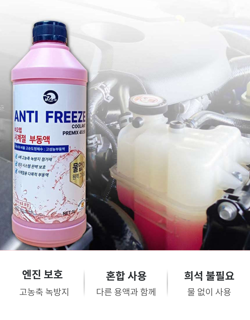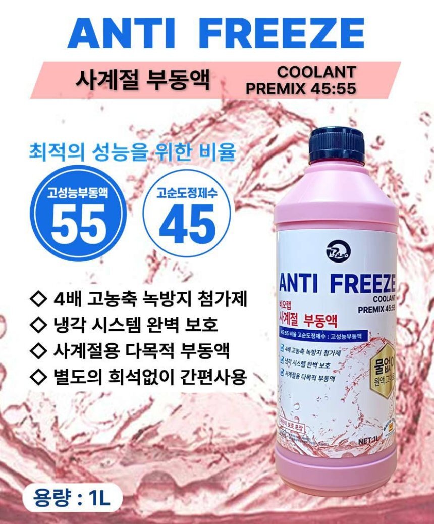 [사계절] 자동차 부동액 차량용 냉각수 교체 에틸렌글리콜 보충 1L