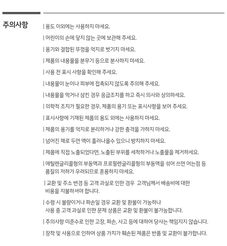 • 반품/교환은 미사용 제품에 한해 배송완료 후 7일 이내 접수하여 주십시오.