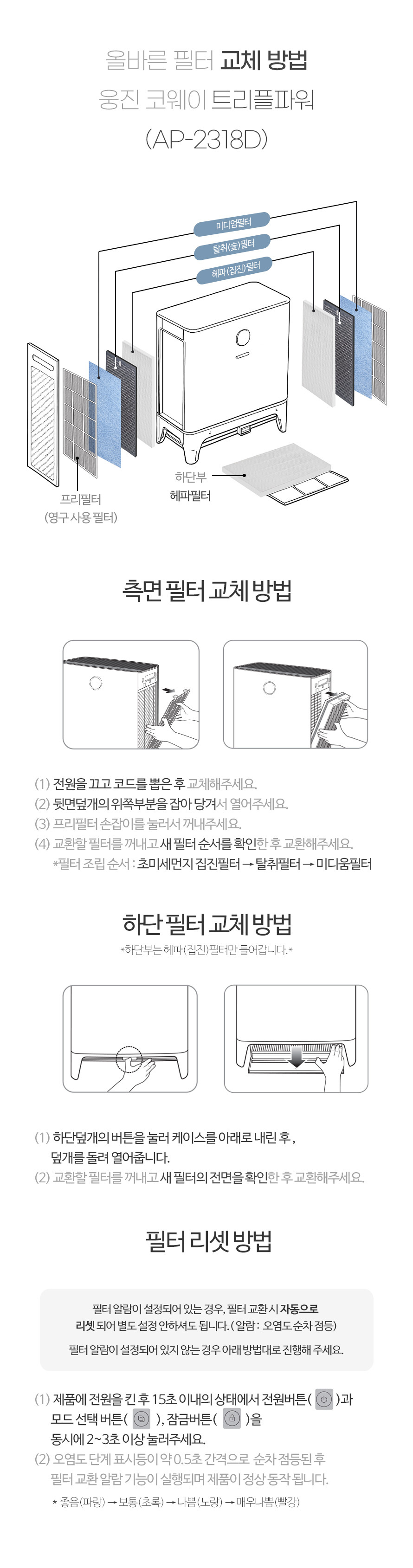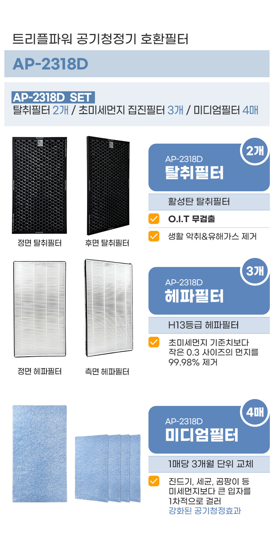 [메이저필터] 국내생산 코웨이 트리플파워 공기청정기 필터 AP-2318D
