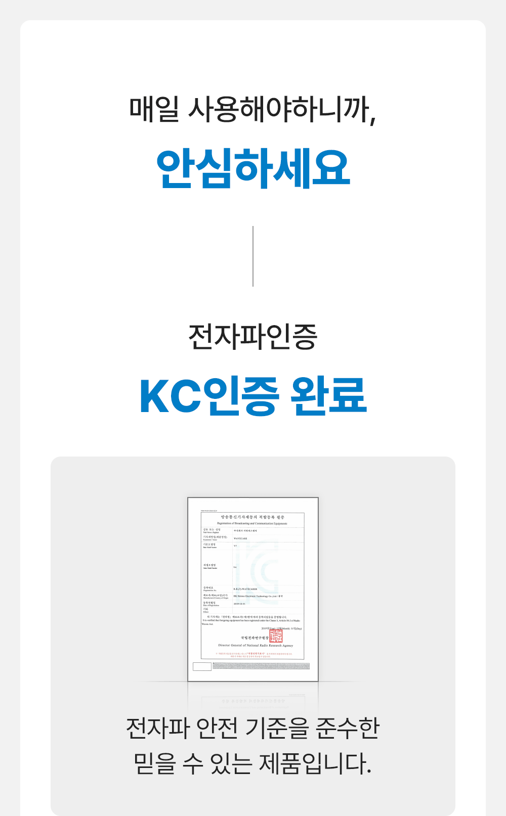 • KC 인증정보 (「전기용품 및 생활용품 안전관리법」에 따른 안전인증ㆍ안전확인ㆍ공급자적합성확인대상제품 및 「전파법」에 따른 적합인증ㆍ적합등록 대상 기자재에 한함)