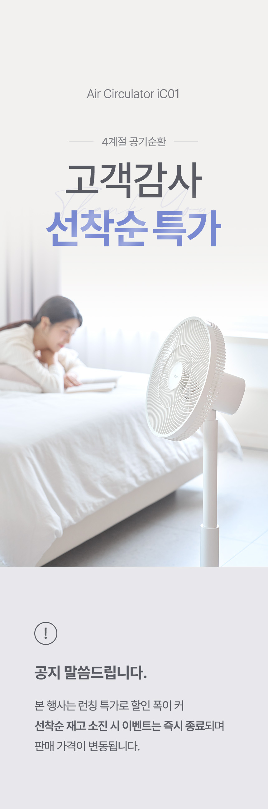[아이닉] 공기순환 서큘레이터 선풍기 iC01 리모컨 앱 기능 지원