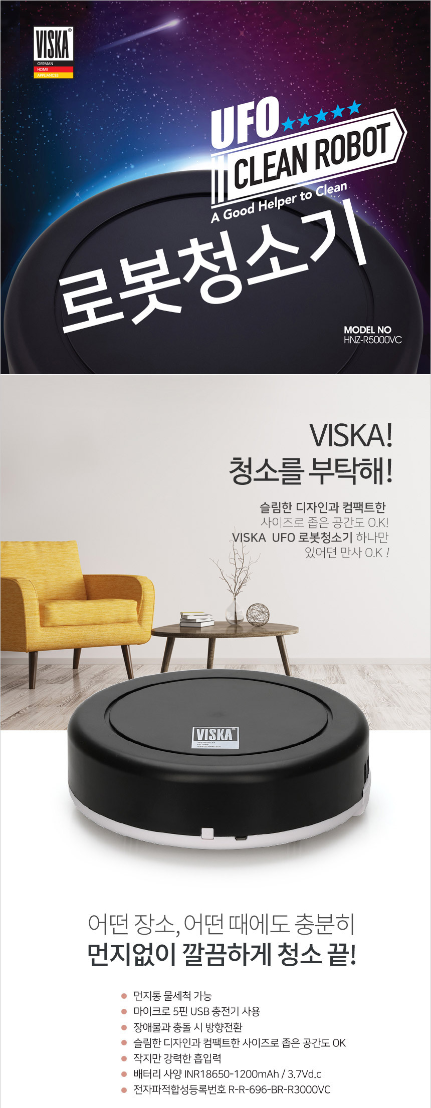 [비스카] UFO 로봇청소기 HNZ-R5000VC