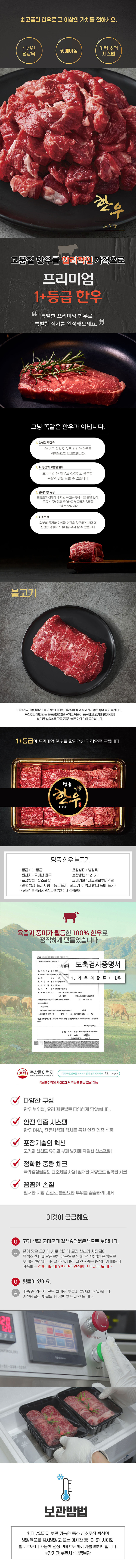 - 축산물 - 「축산법」에 따른 등급 표시(1++ 등급 국내산 쇠고기의 경우 「소ㆍ돼지 식육의 표시방법 및 부위 구분기준」에 따라 근내지방도 정보를 포함하여 표시), 「가축 및 축산물 이력관리에 관한 법률」에 따른 이력관리대상축산물 유무
