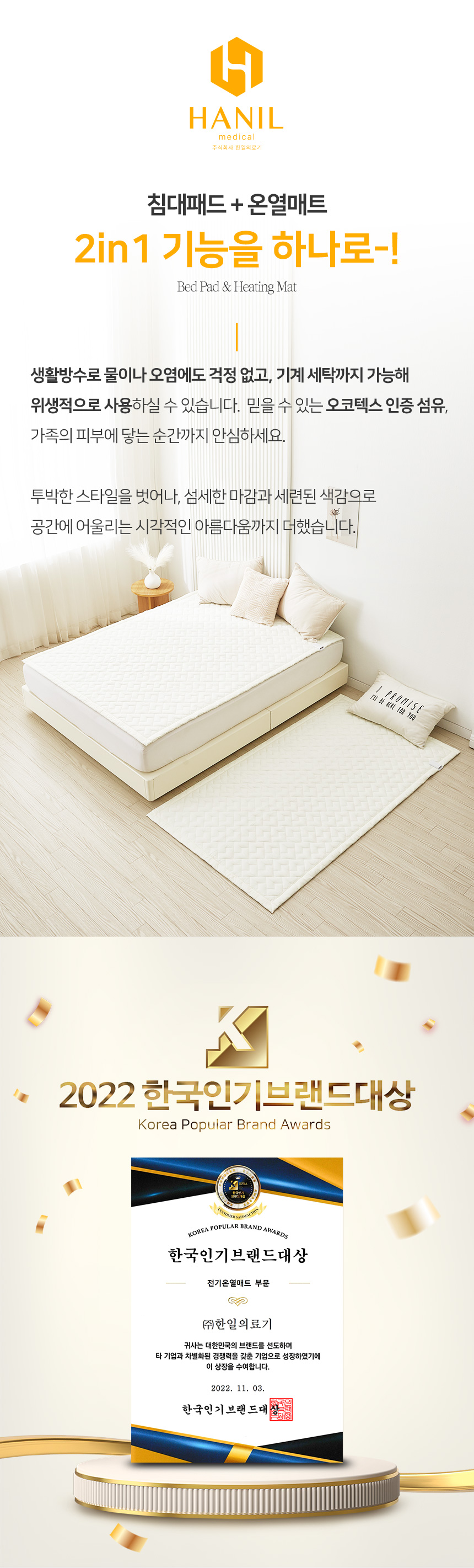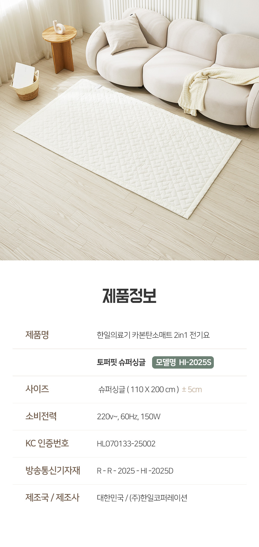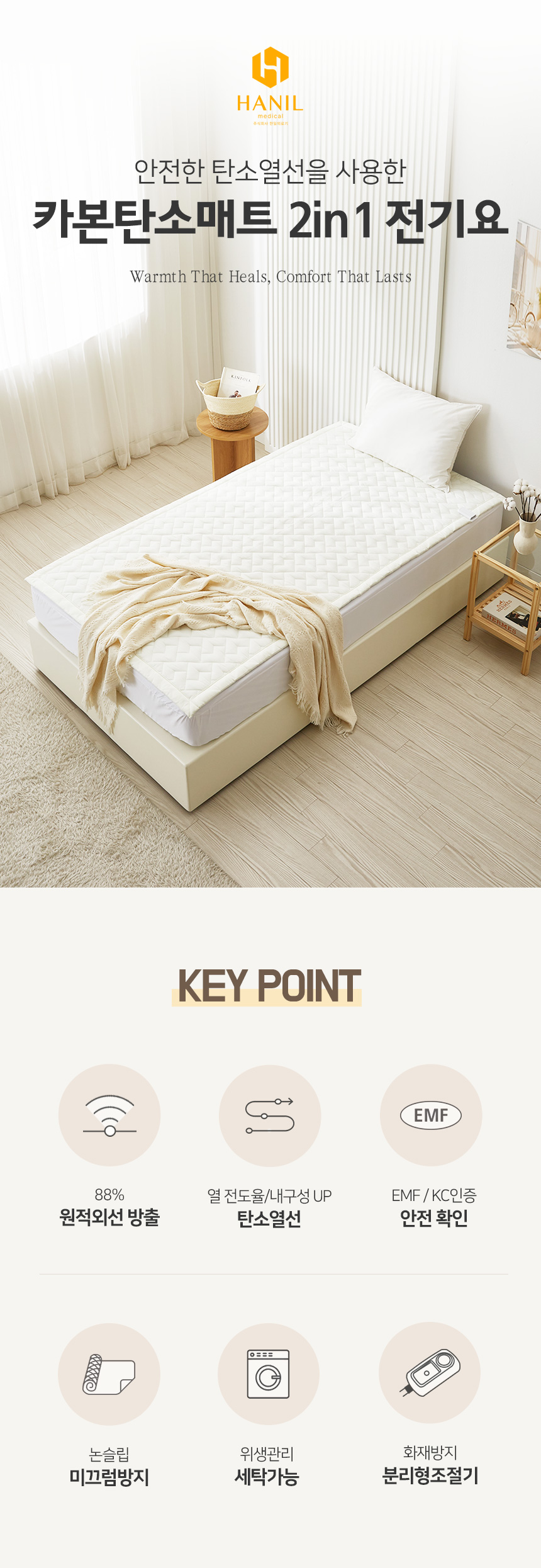 [한일의료기] 카본탄소매트 2in1 전기요 토퍼핏 슈퍼싱글(110X200cm)