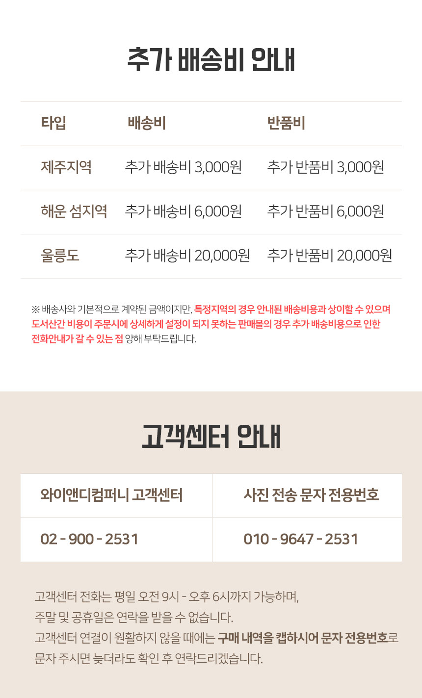 지역별 추가 배송비가 부과될 수 있습니다