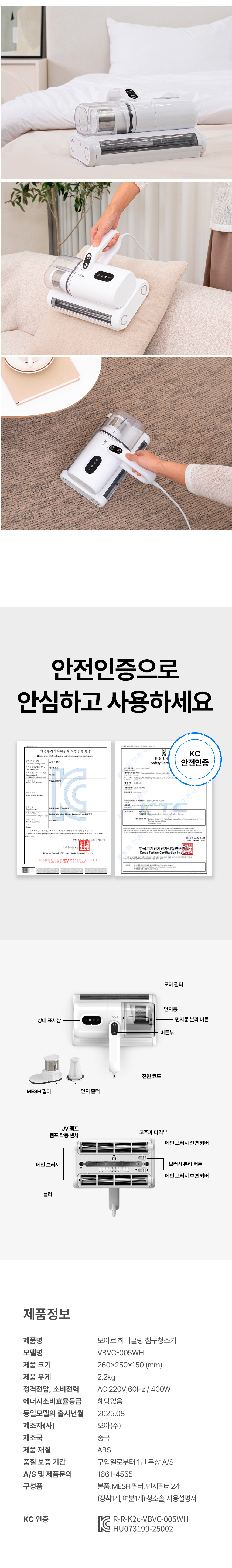 [보아르] 하티클링 침구청소기 듀얼브러시 열풍 UV 살균 패브릭 소파 쇼파 카페트 침대 청소