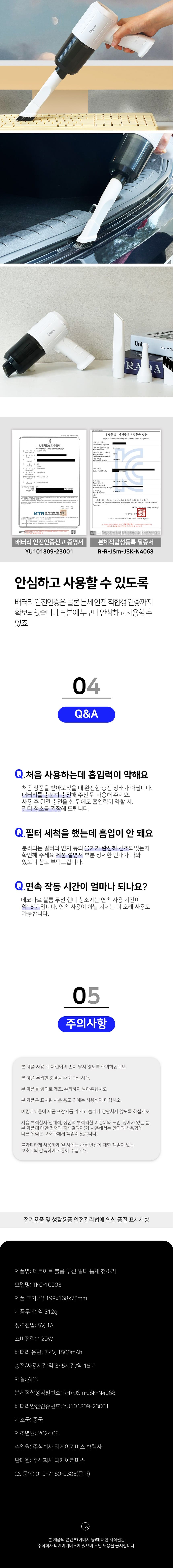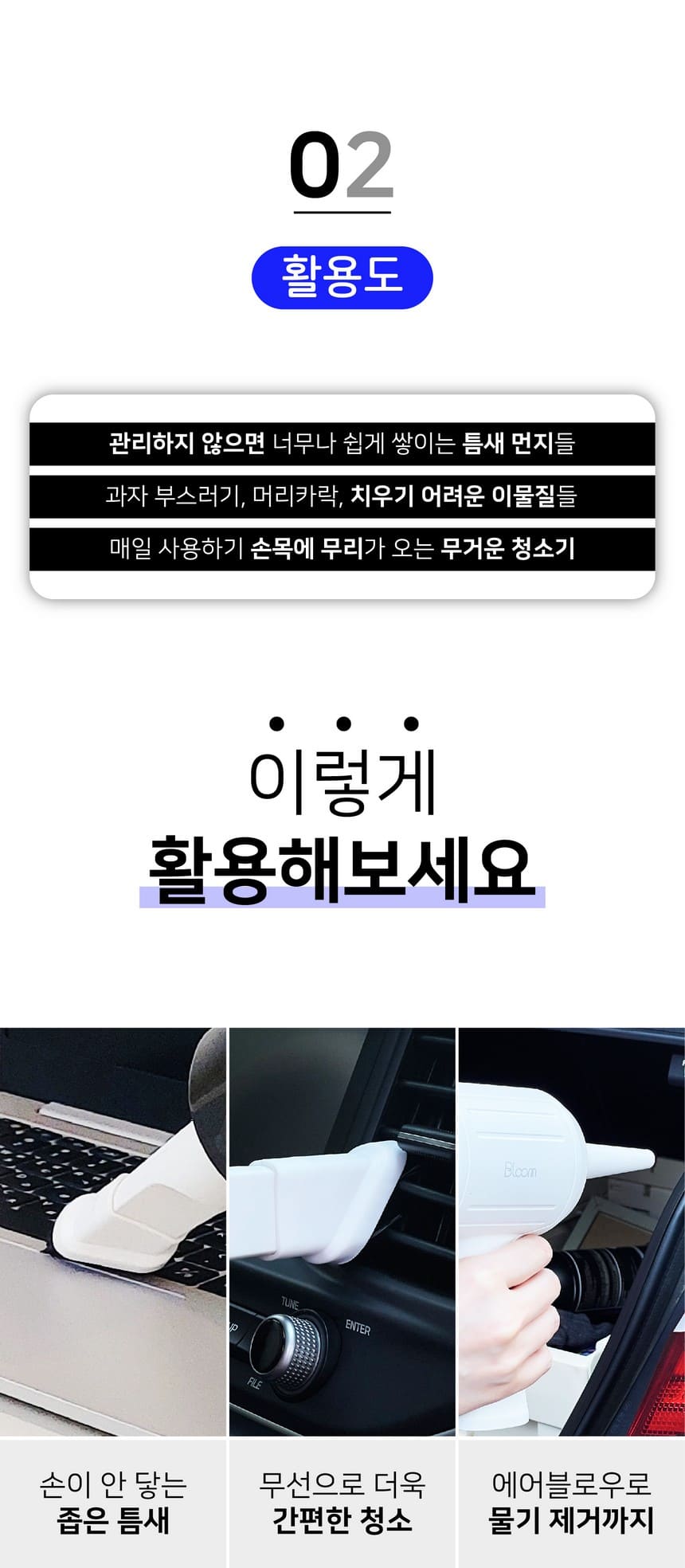 [데코아르] 블룸 무선 멀티 틈새 공기주입 겸용 청소기 TKC-10003