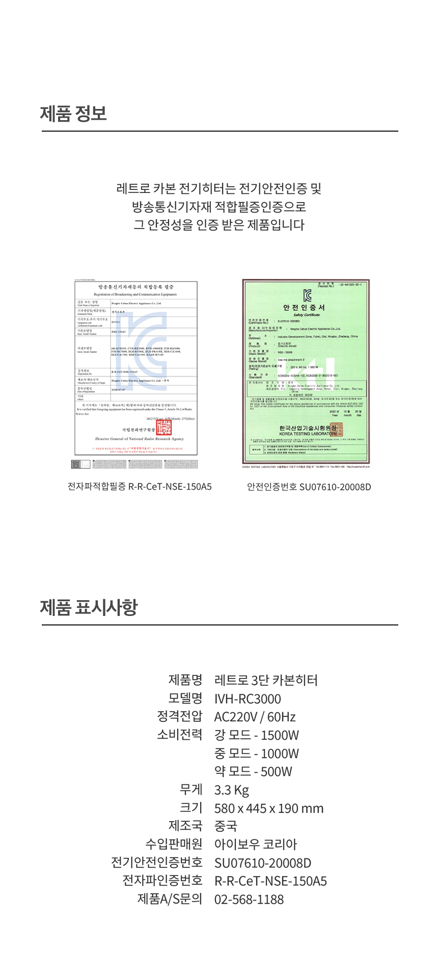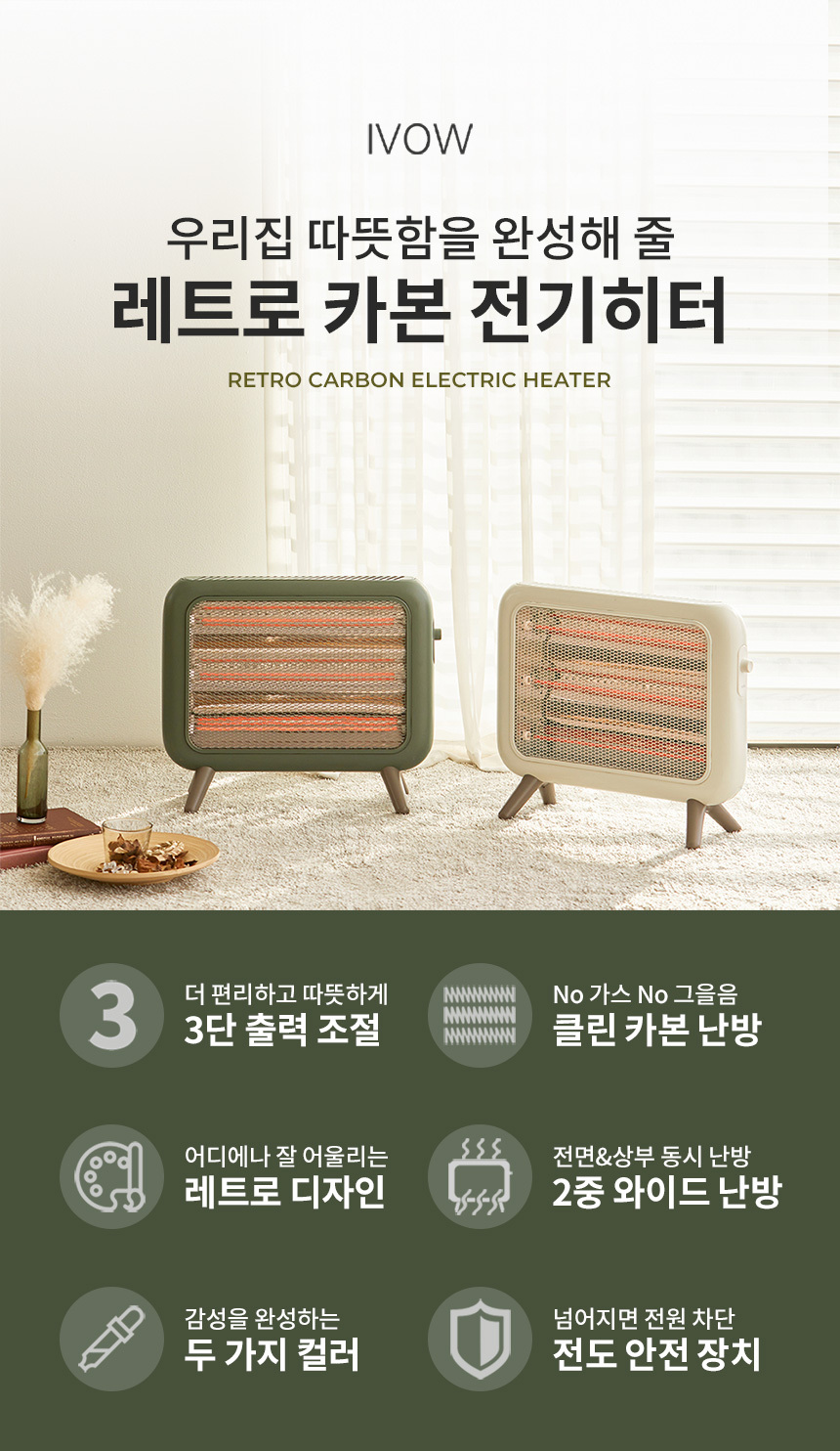 [아이보우] 3단 레트로 카본 히터 IVH-RC3000