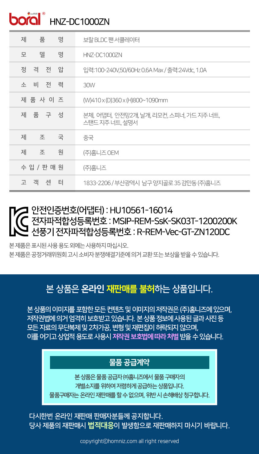 [보랄] BLDC 팬 서큘레이터 HNZ-DC1000ZN