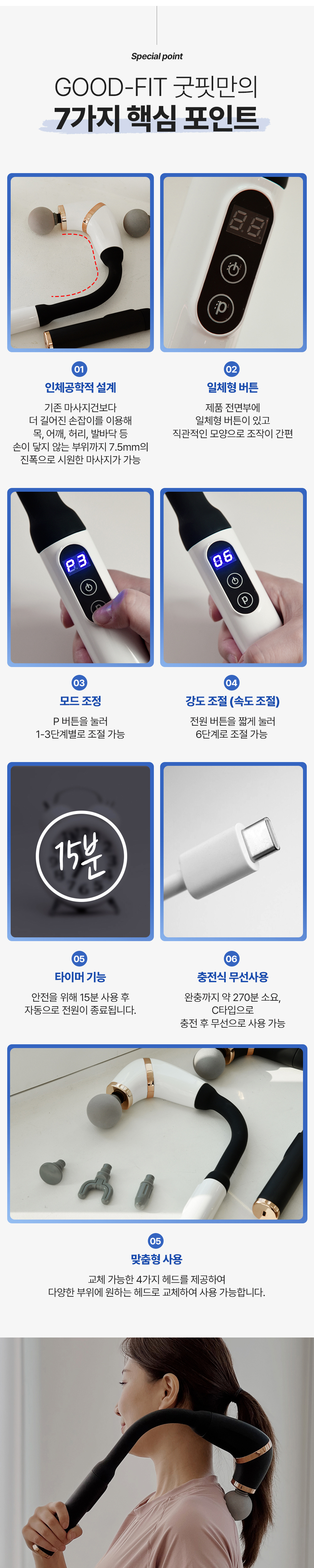 진동마사지, 부위별헤드변경,강도조절 |