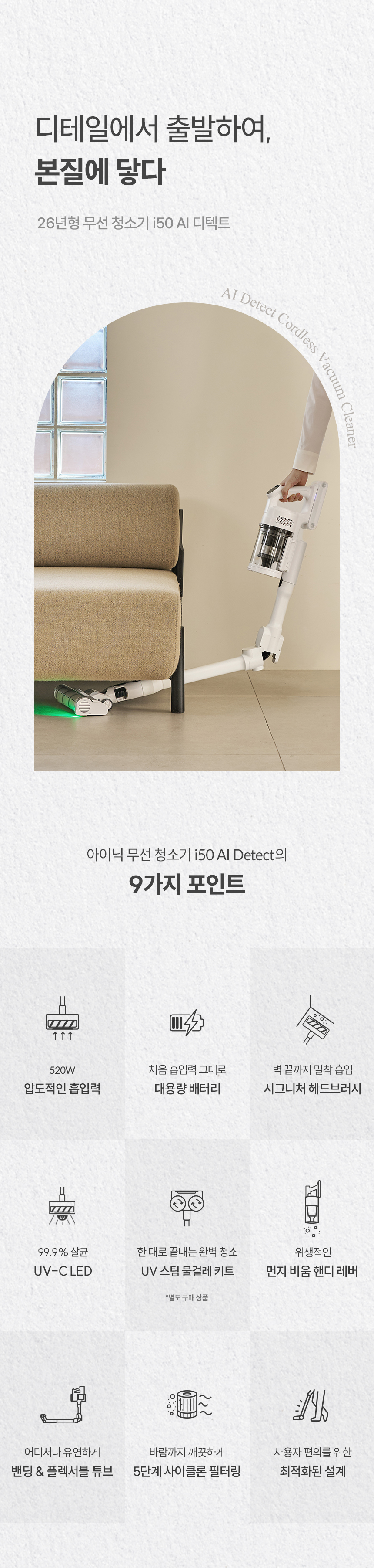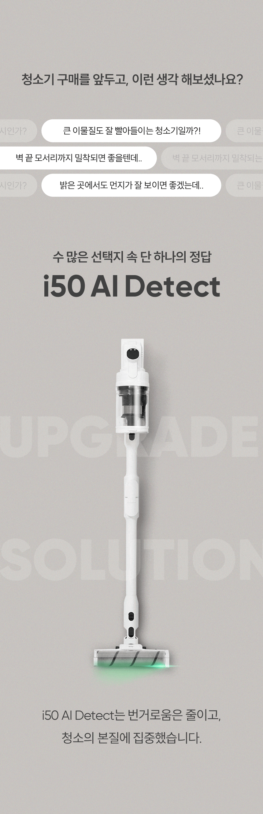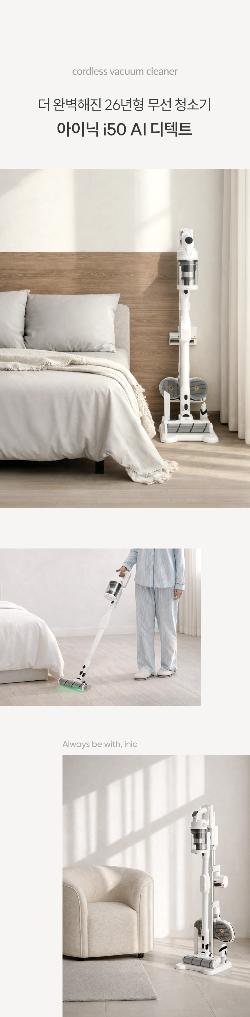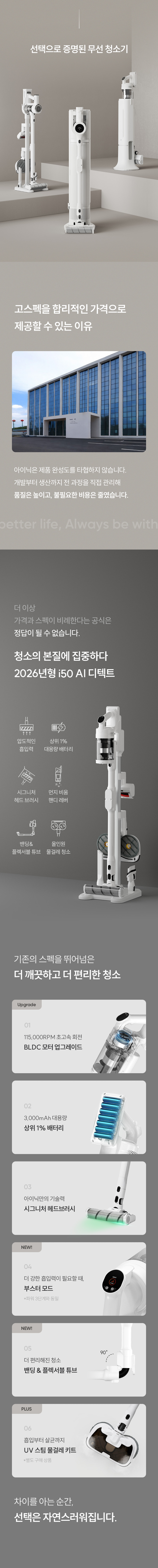 • 아이닉 i50 AI 디텍트 가벼운 무선 진공청소기 원룸 자취방용 : 아이닉