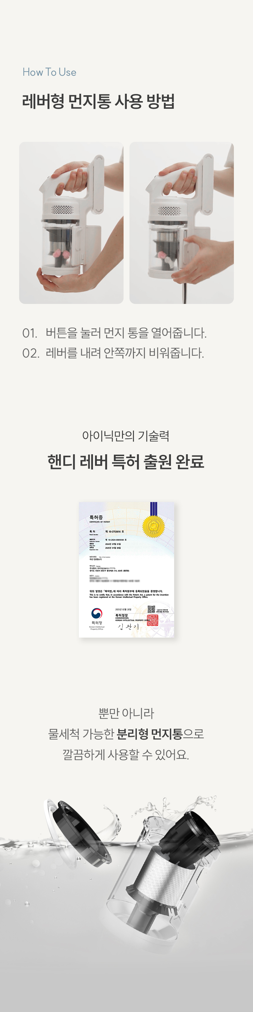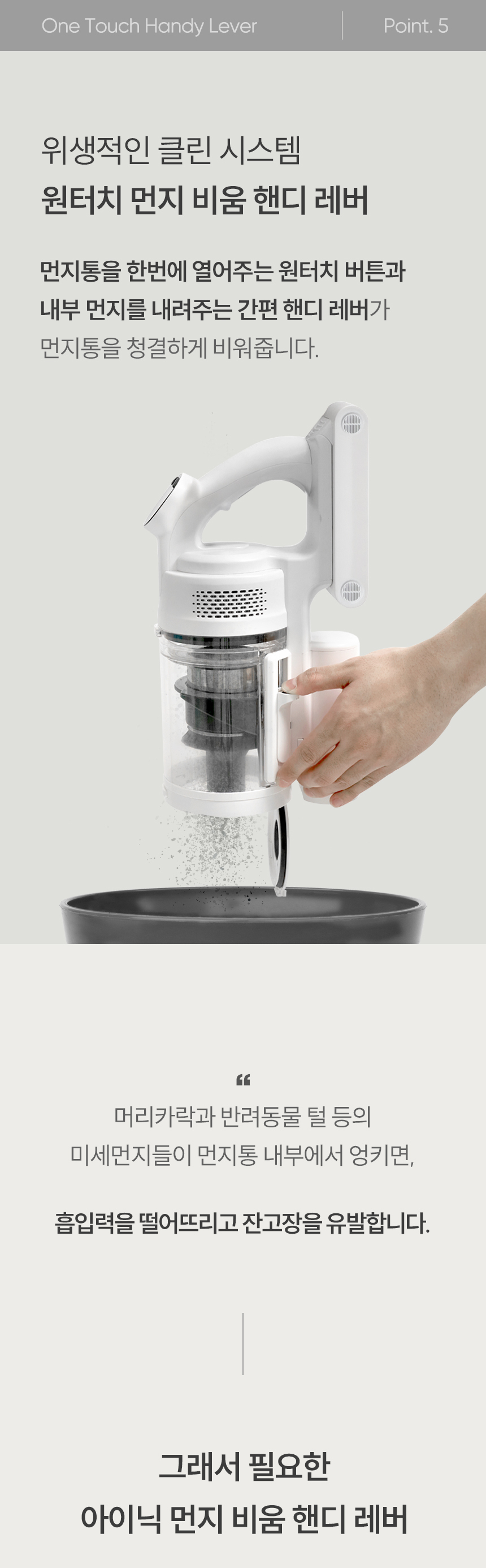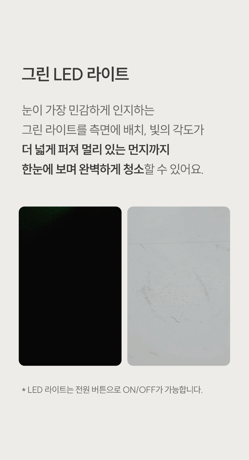 오늘로 에코모드(가장 약한)로만 청소 3일차입니다. 청소헤드 불빛은 한때 유행하던 백색led 보다 먼지를 잘 비추고 먼지 버리는 방식 특히 맘에 듭니다. 먼지통 비울 때 실린더 위로 먼지가 낄 때도 있는데 세번째 사진에 있는 구멍으로 바람 한번 훅~불어주면 내려갑니다