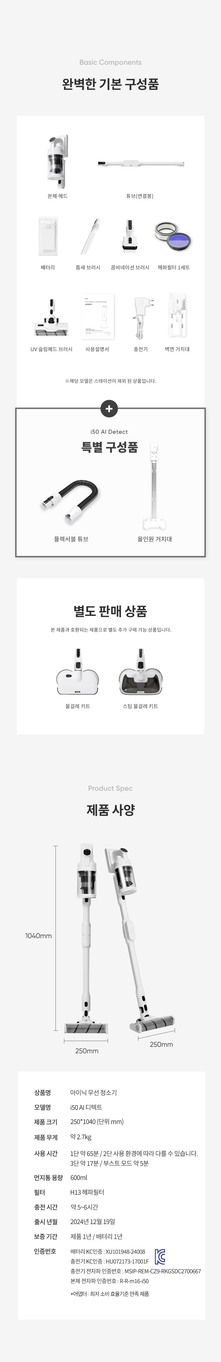 제품 선택 : i50 AI 디텍트 본품 + 스팀 물걸레키트(+79000)