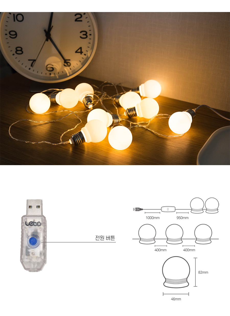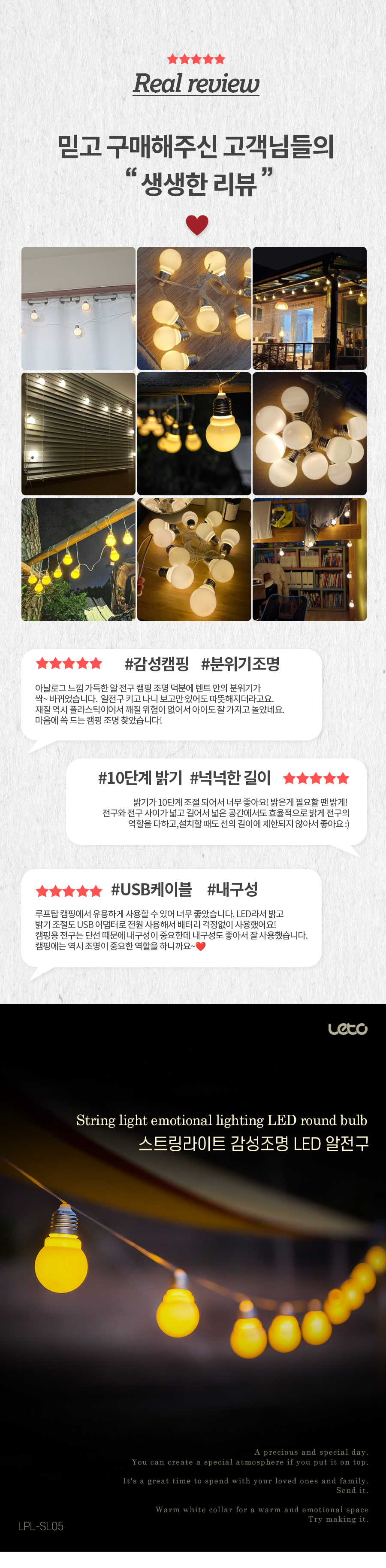 [레토] 감성 크리스마스 캠핑 LED 알전구 무드등 (USB전원) LPL-SL05