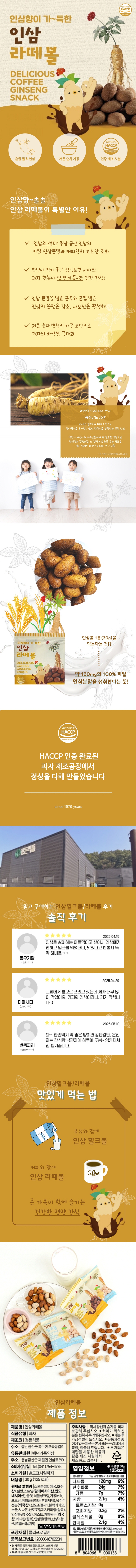 정든식품 금산 인삼 라떼볼 어르신 사무실 영양 간식 과자 커피맛 30g 12봉