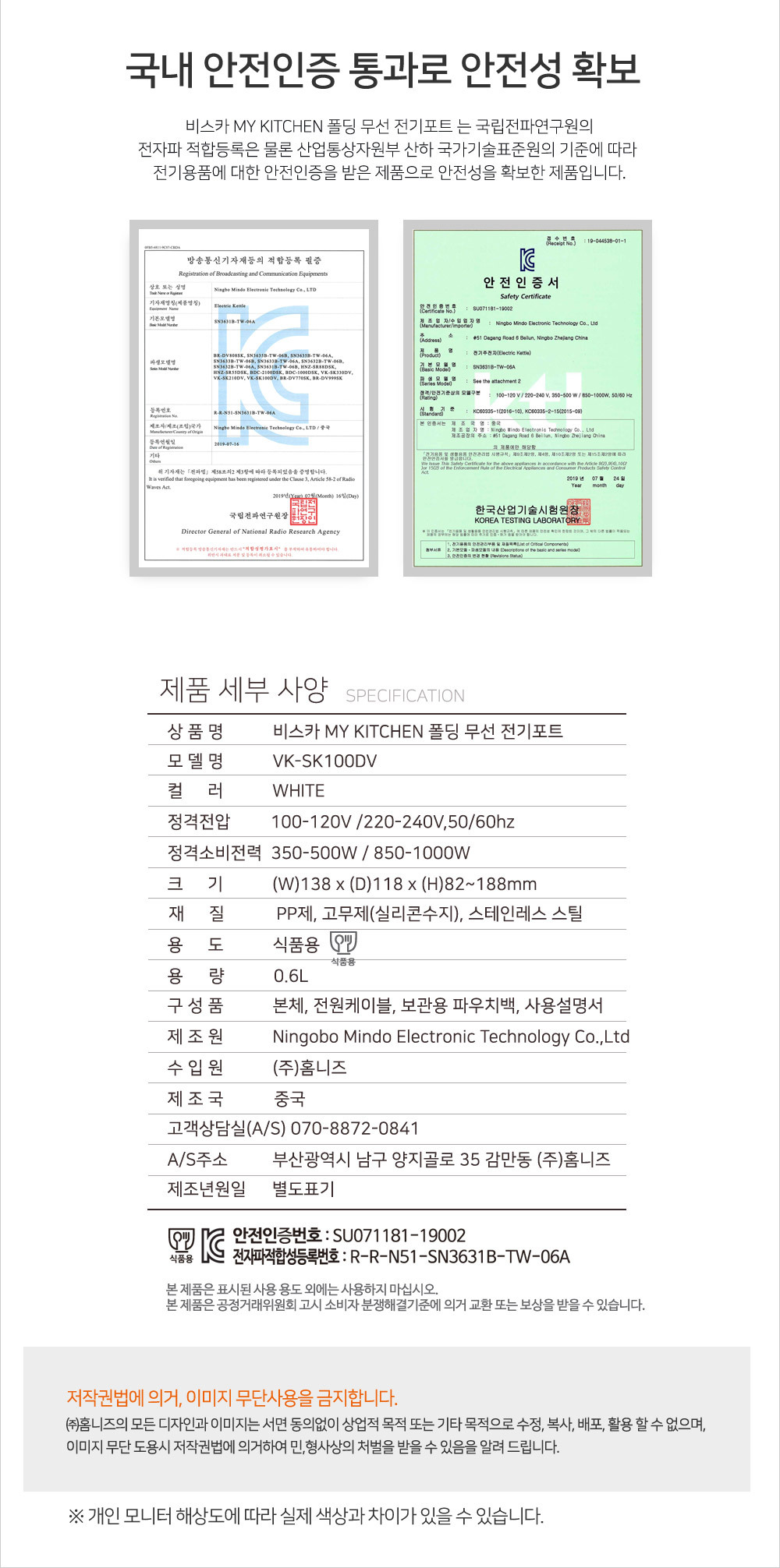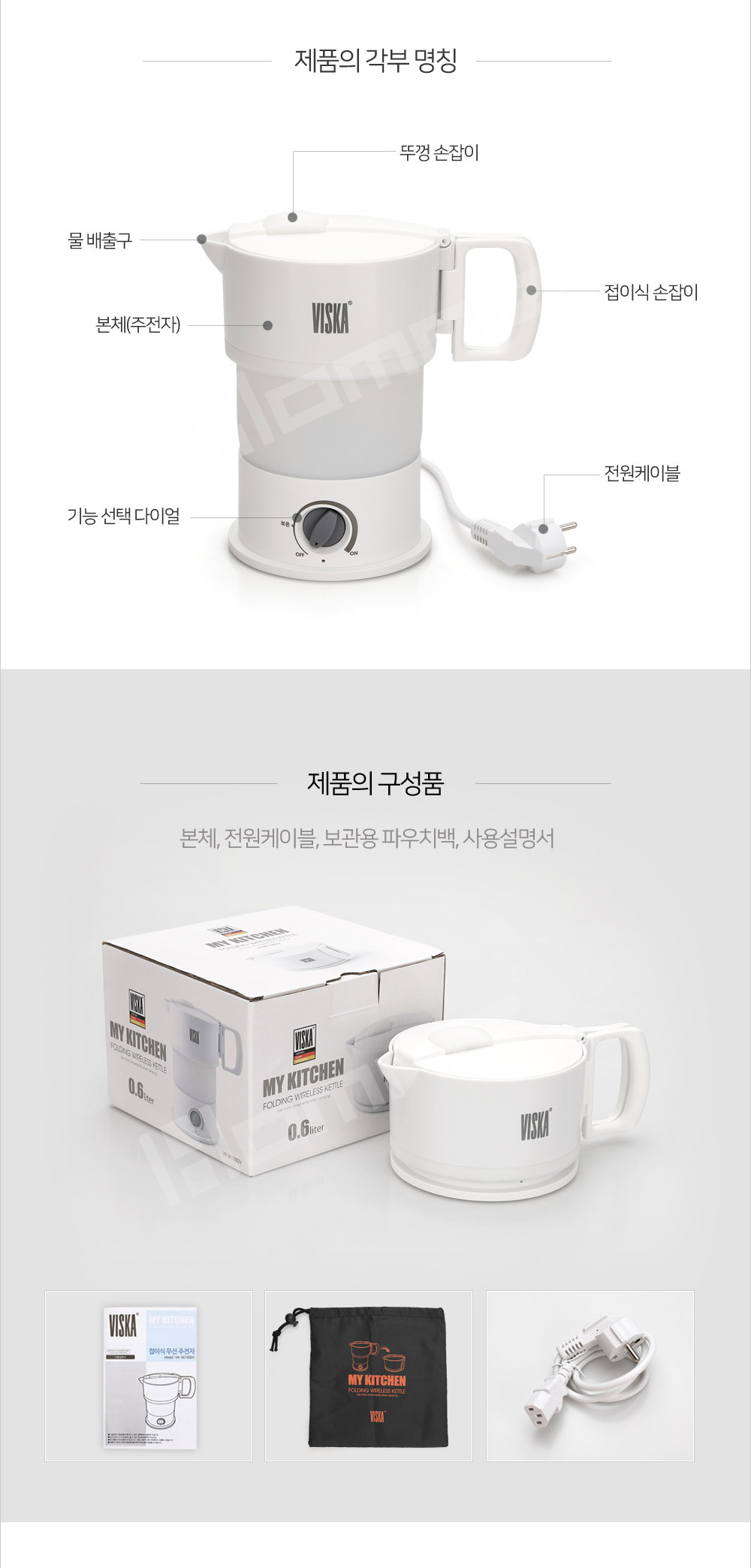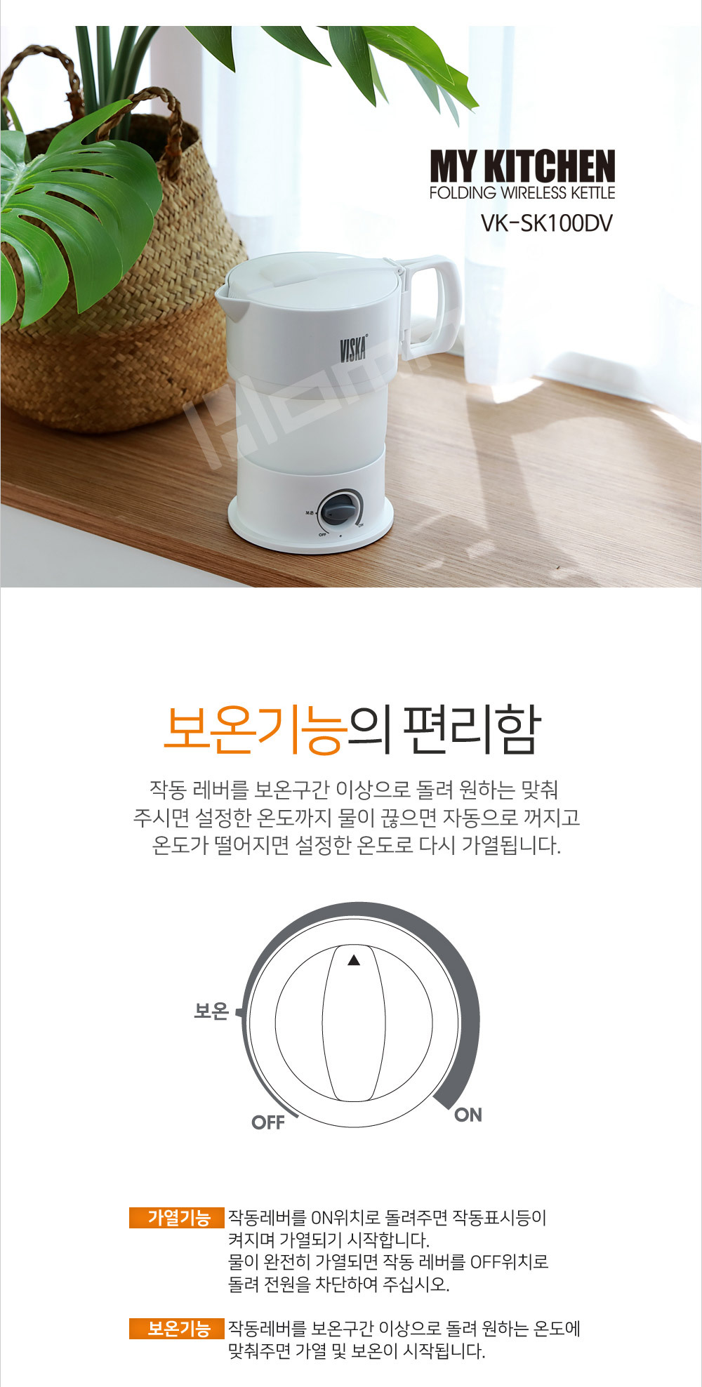 [비스카] MY KITCHEN 폴딩 무선 전기포트 VK-SK100DV