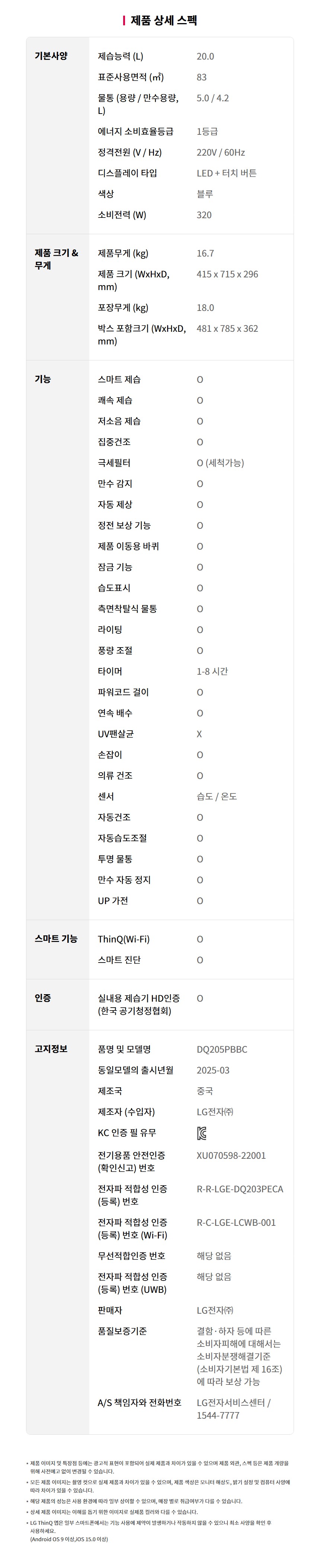 [LG전자] 휘센 제습기 20L 블루 (DQ205PBBC)