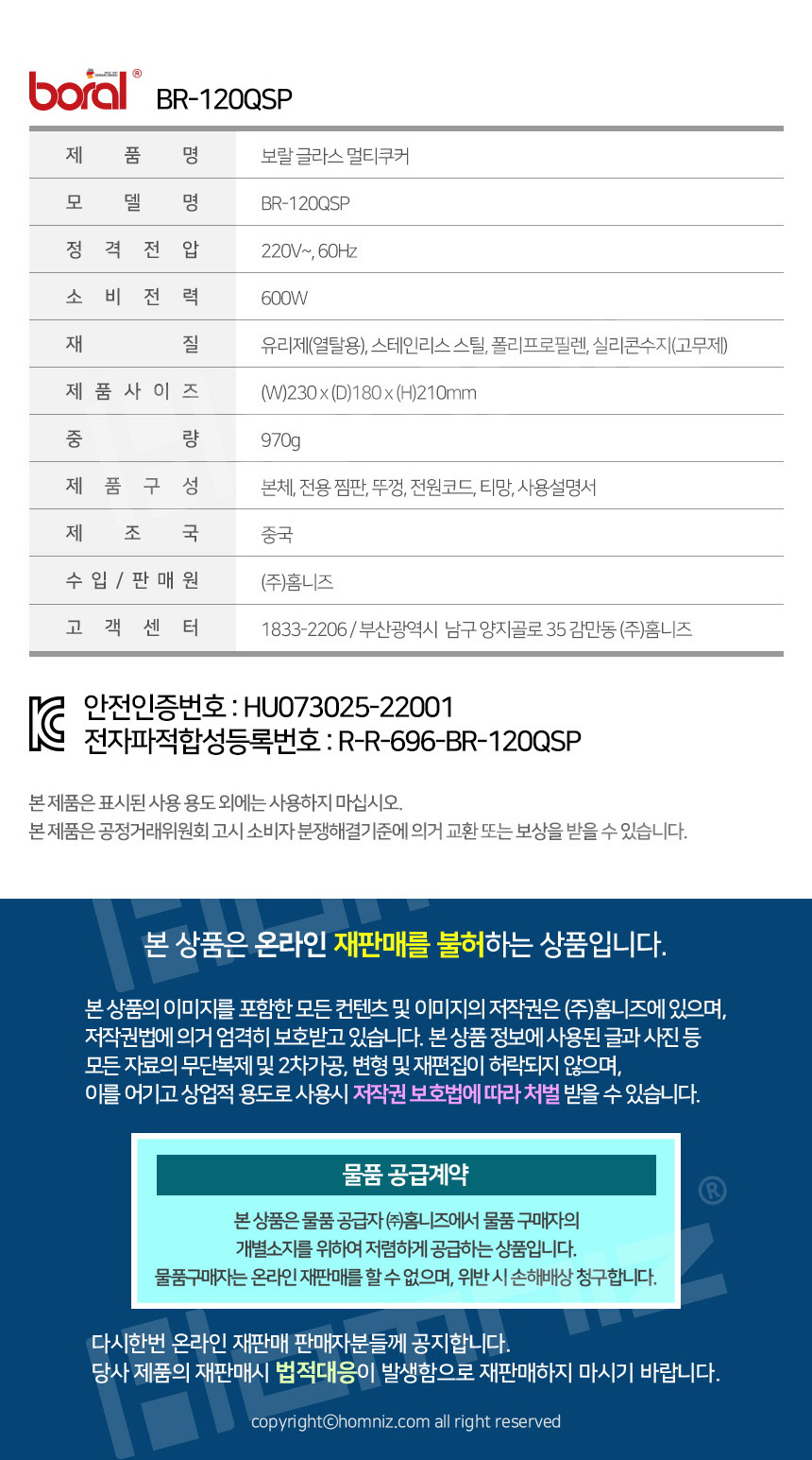 [보랄] 글라스 멀티쿠커 BR-120QSP