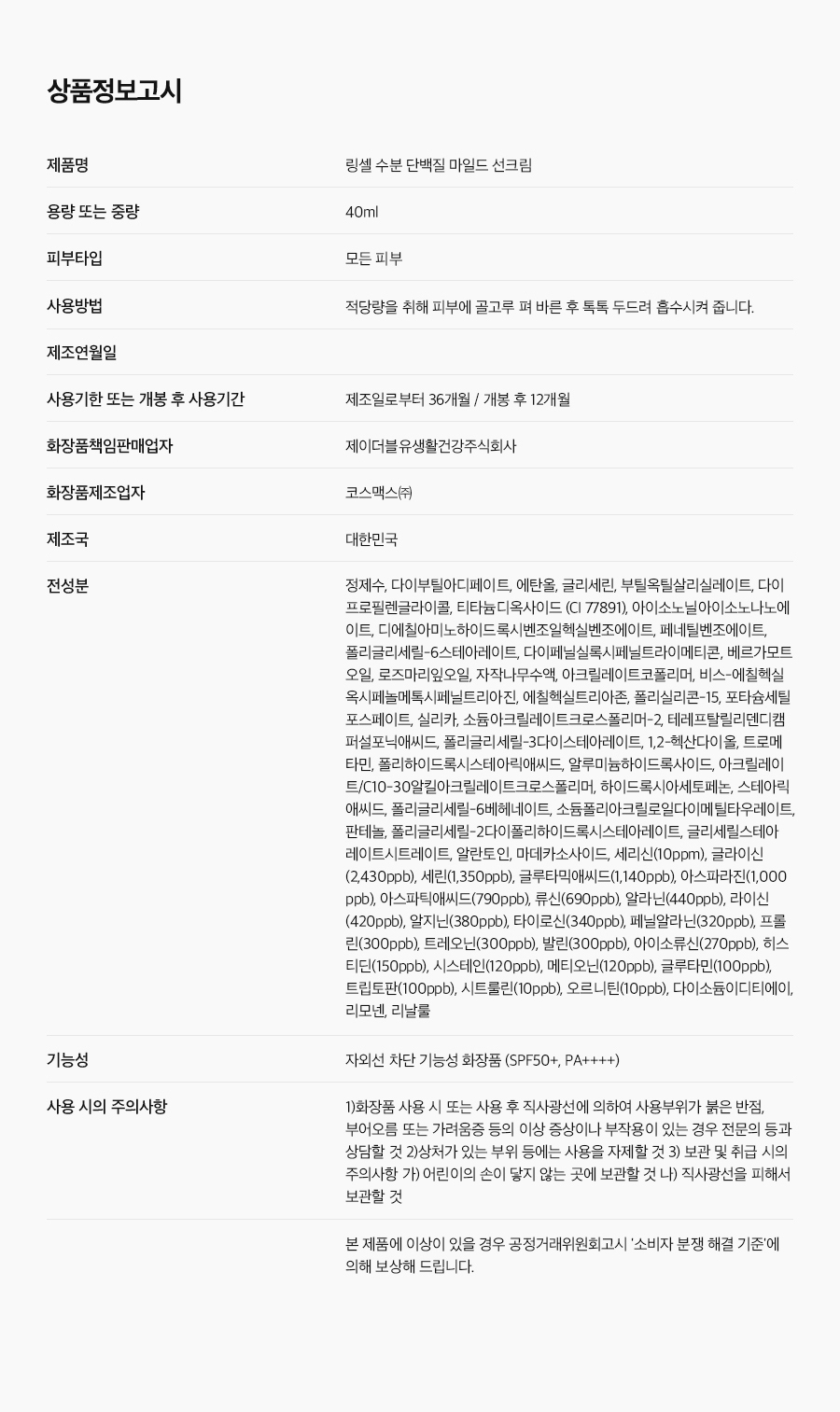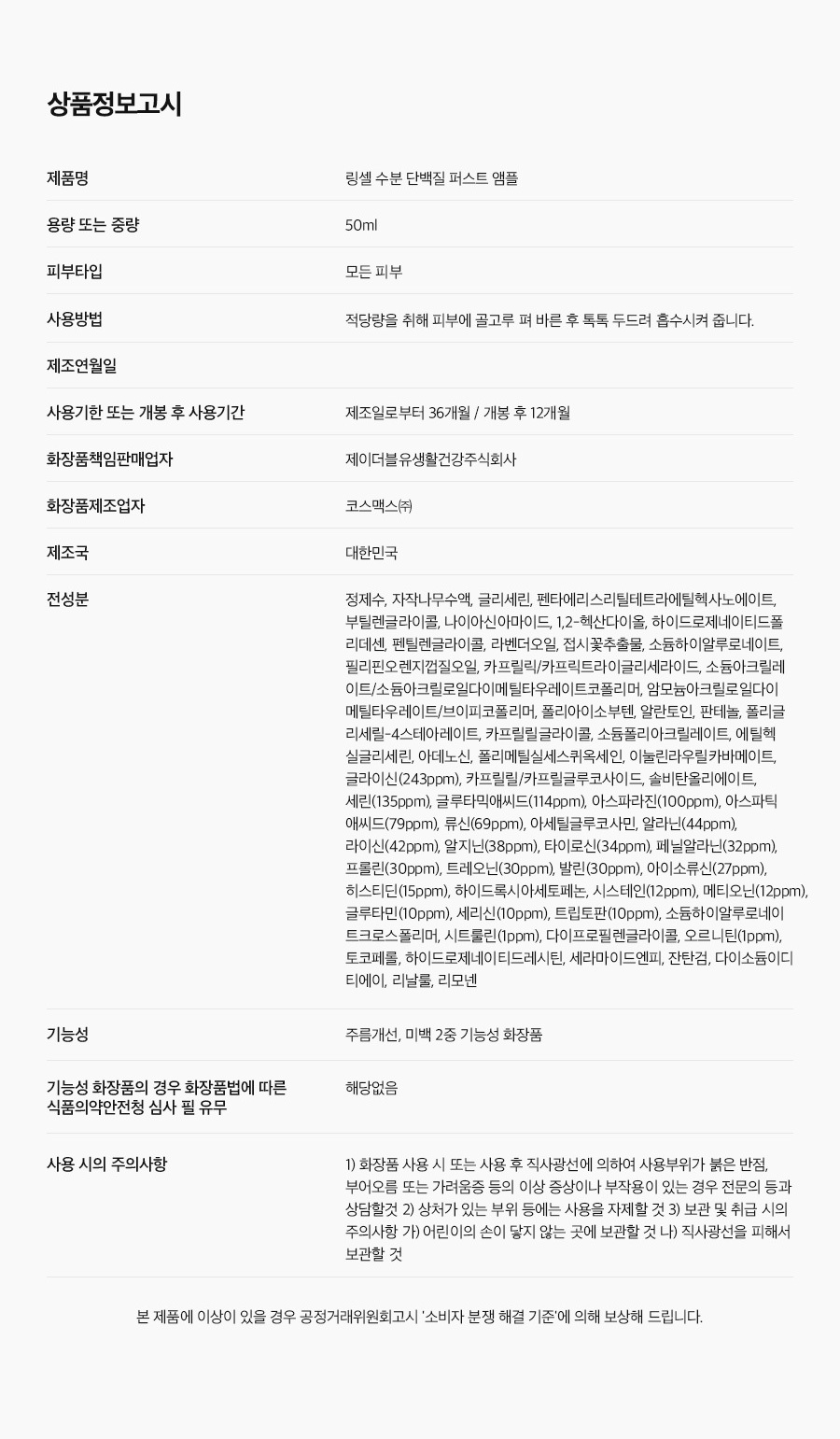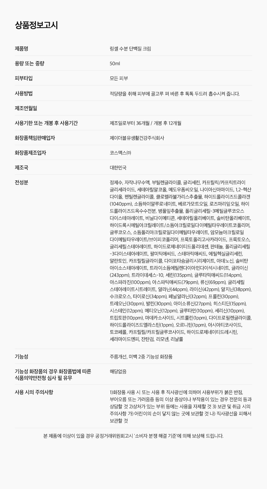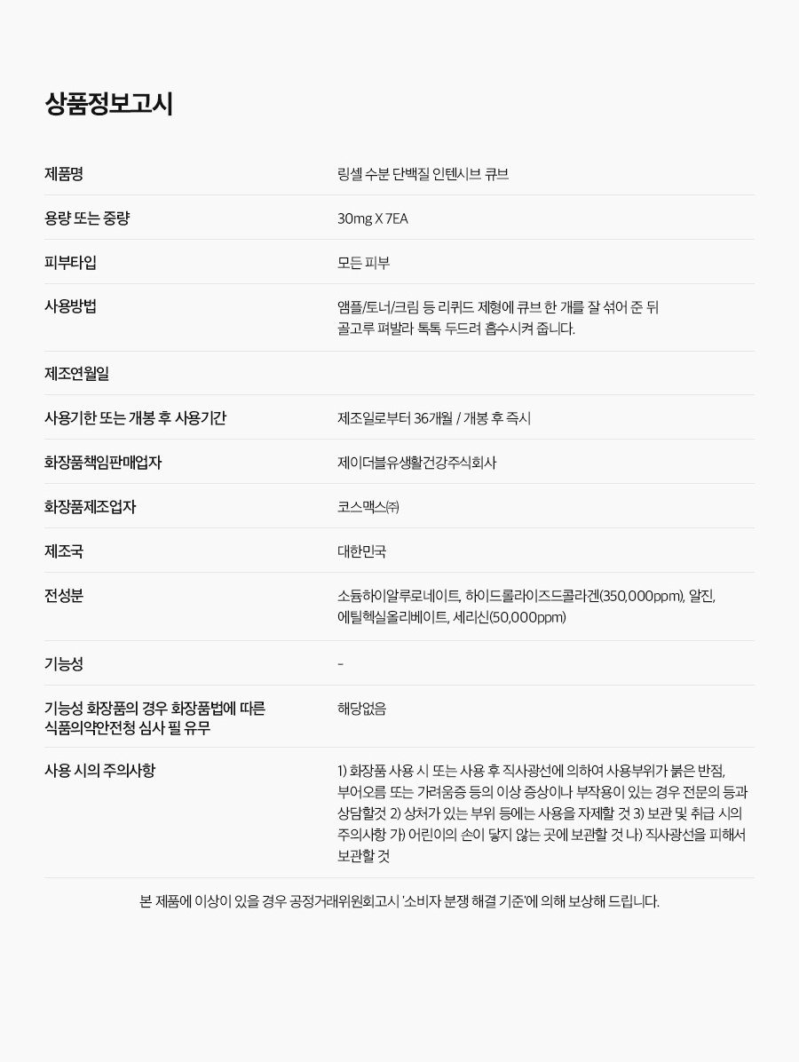 • 「화장품법」에 따라 기재ㆍ표시하여야 하는 모든 성분