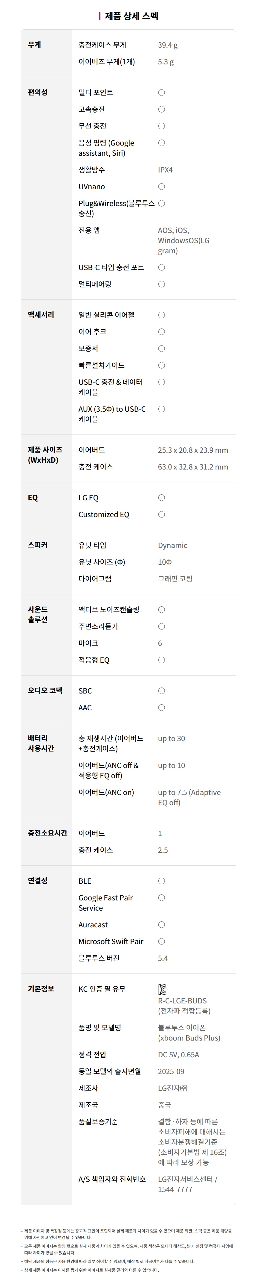 [LG전자] 엑스붐 버즈 플러스 블루투스 이어폰 화이트&블랙 (BUDSPLUS)