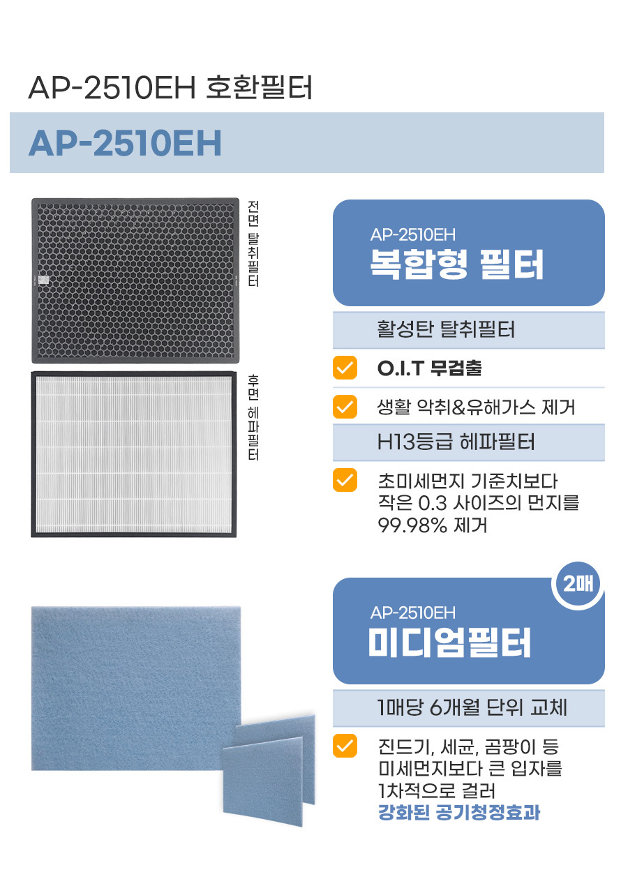 [메이저필터]국내생산 웅진 코웨이 공기청정기 호환필터 AP-2510EH AP-1817F