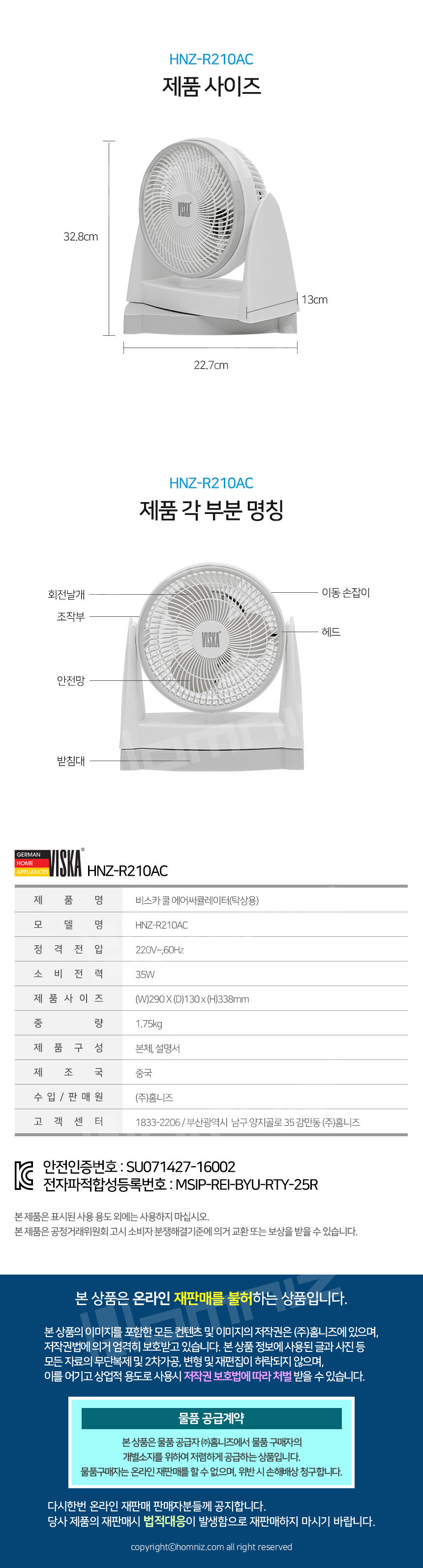 [비스카] 쿨 에어 써큘레이터 (기계식) HNZ-R210AC