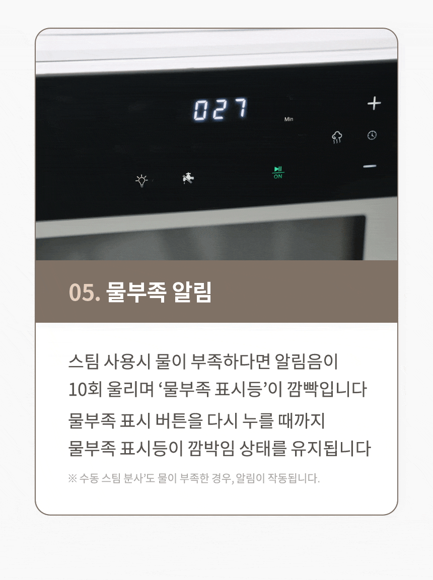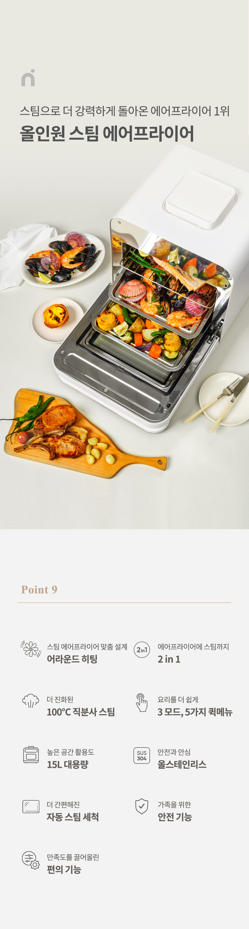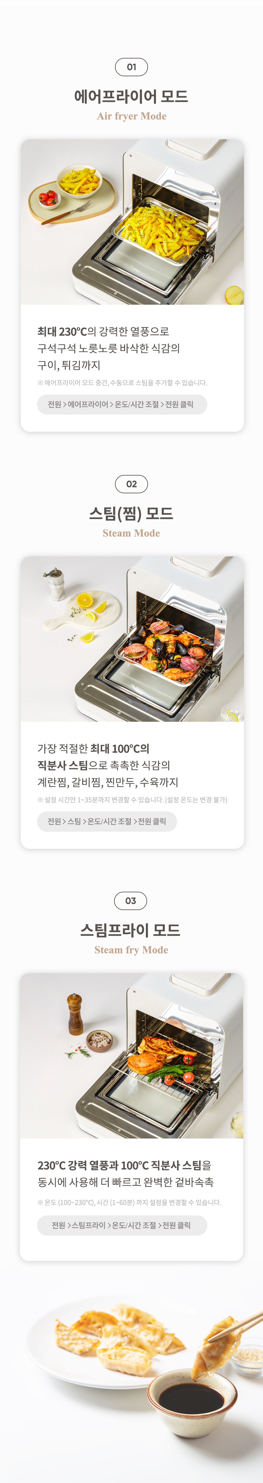 • 220~240V / /60Hz 에어프라이어 1500W / 스팀 900W
