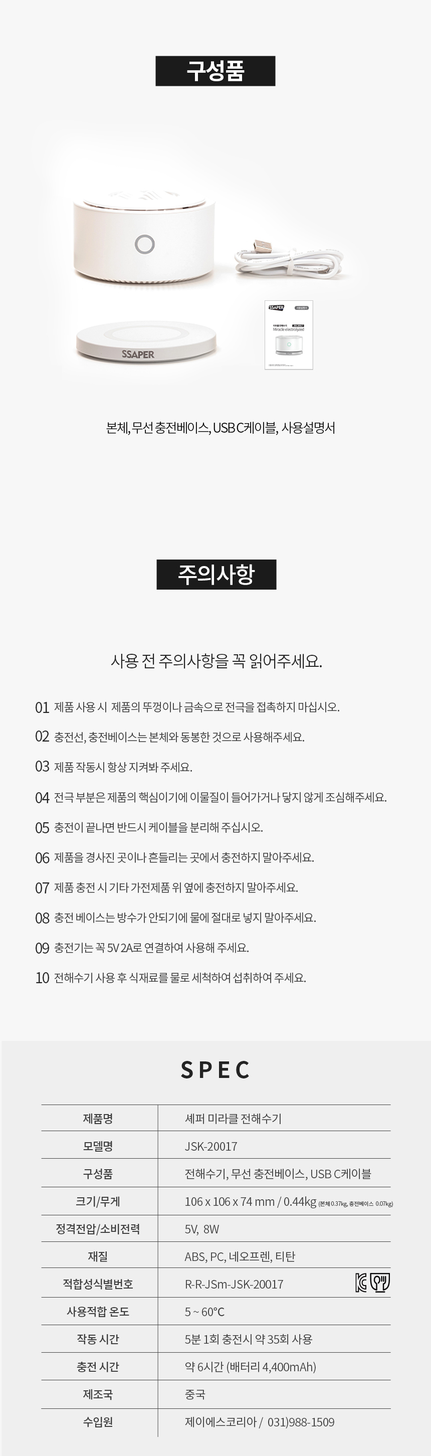 [셰퍼] 미라클 전해수기 JSK-20017