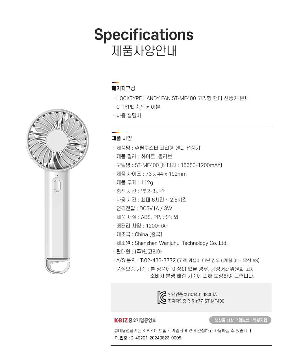 [슈틸루스터] 고리형 핸디 선풍기 ST-MF400