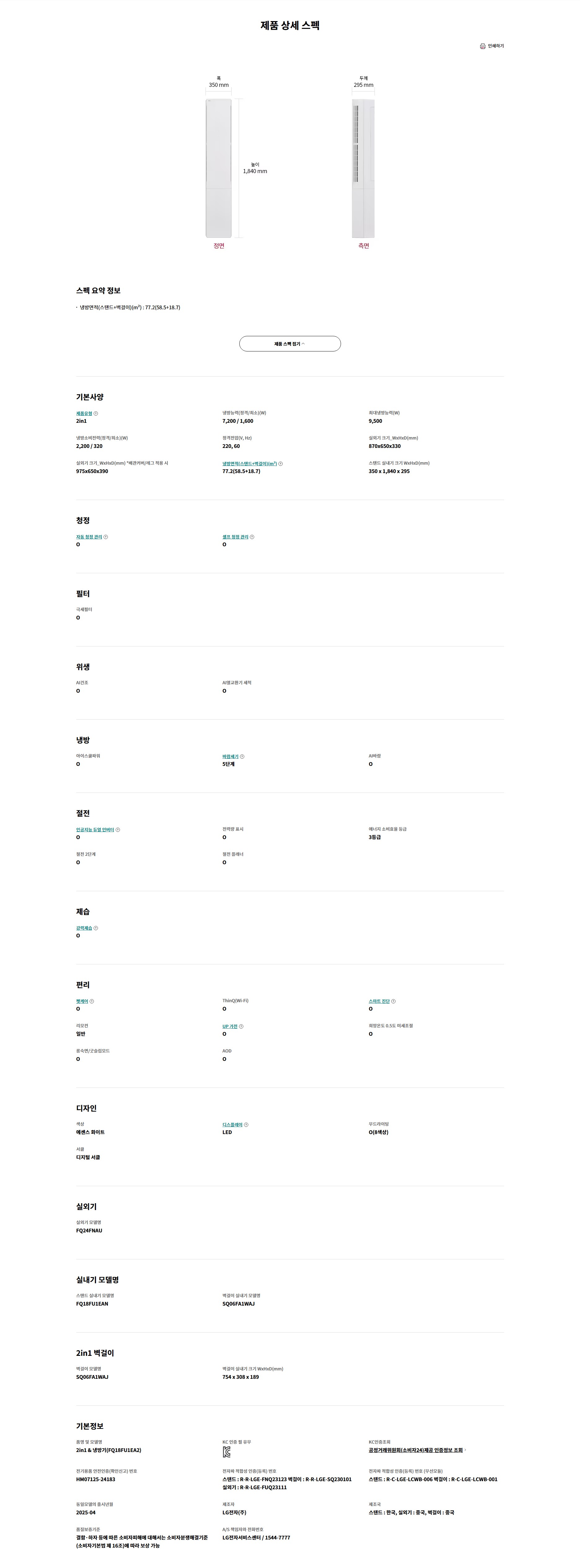 [LG전자] 휘센 오브제컬렉션 뷰II 에어컨 2in1 1시리즈 에센스화이트 (FQ18FU1EA2)