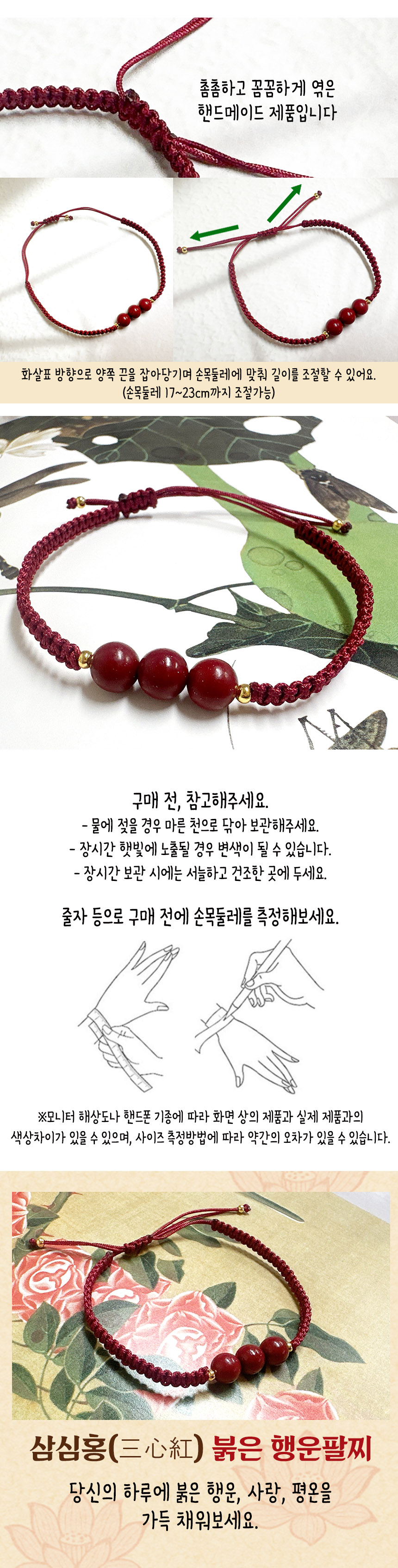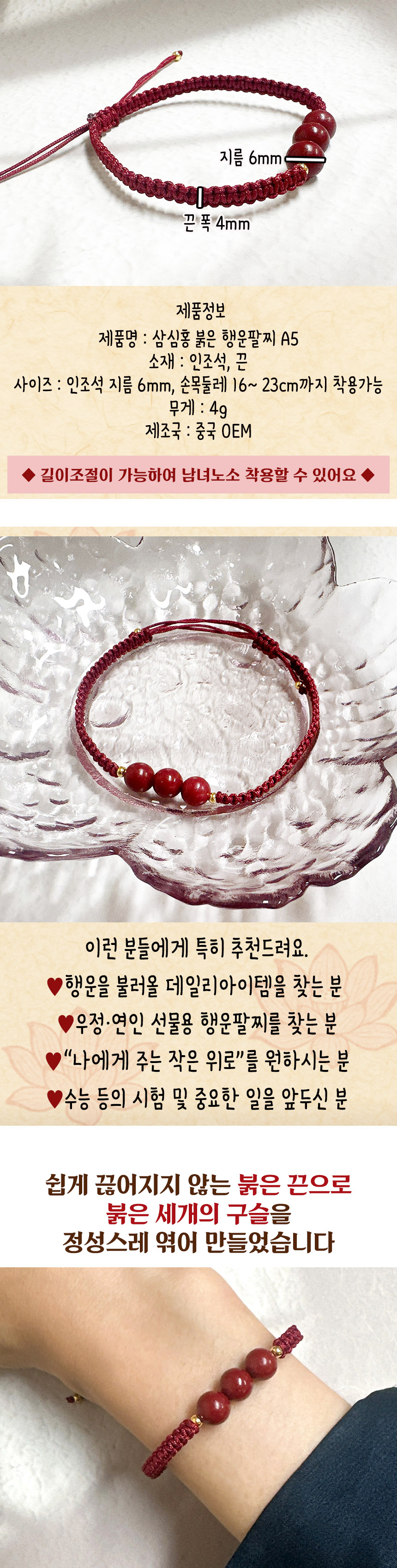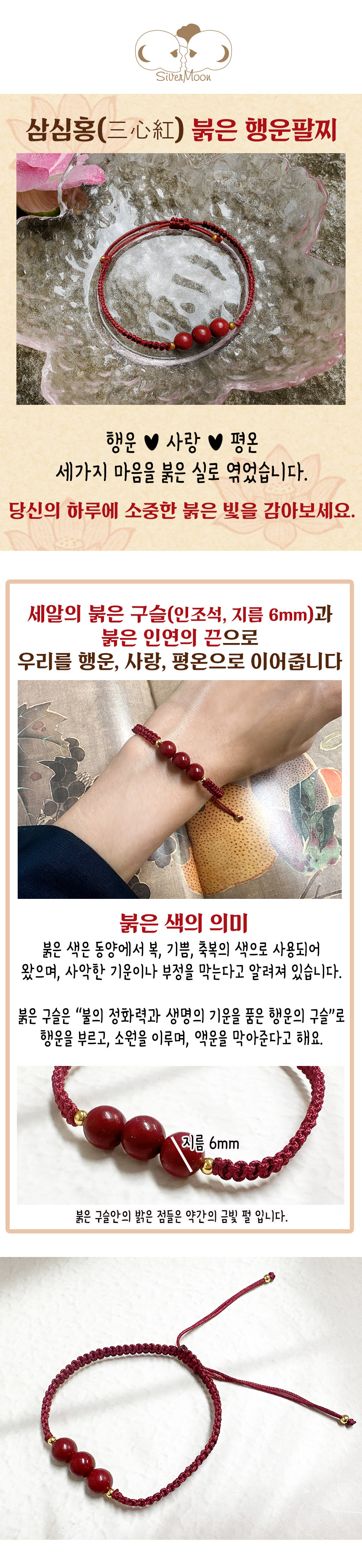 실버문삼심홍 붉은행운팔찌A5 소원팔찌 길이조절가능 매듭