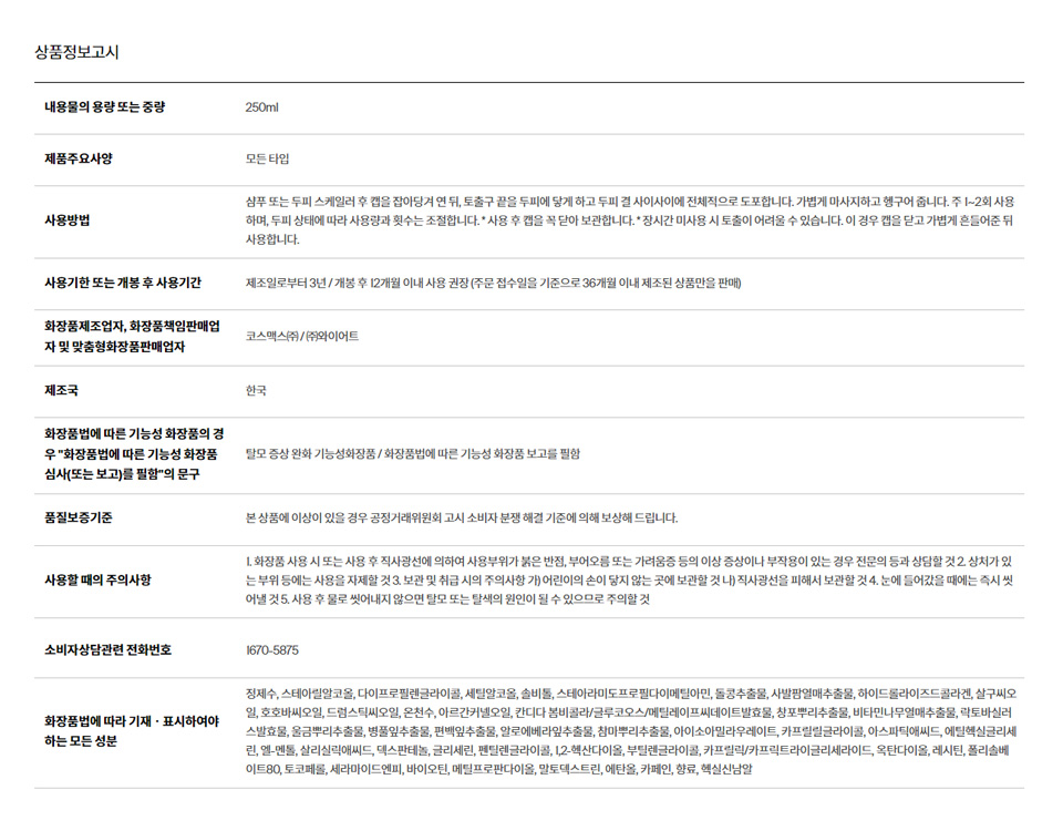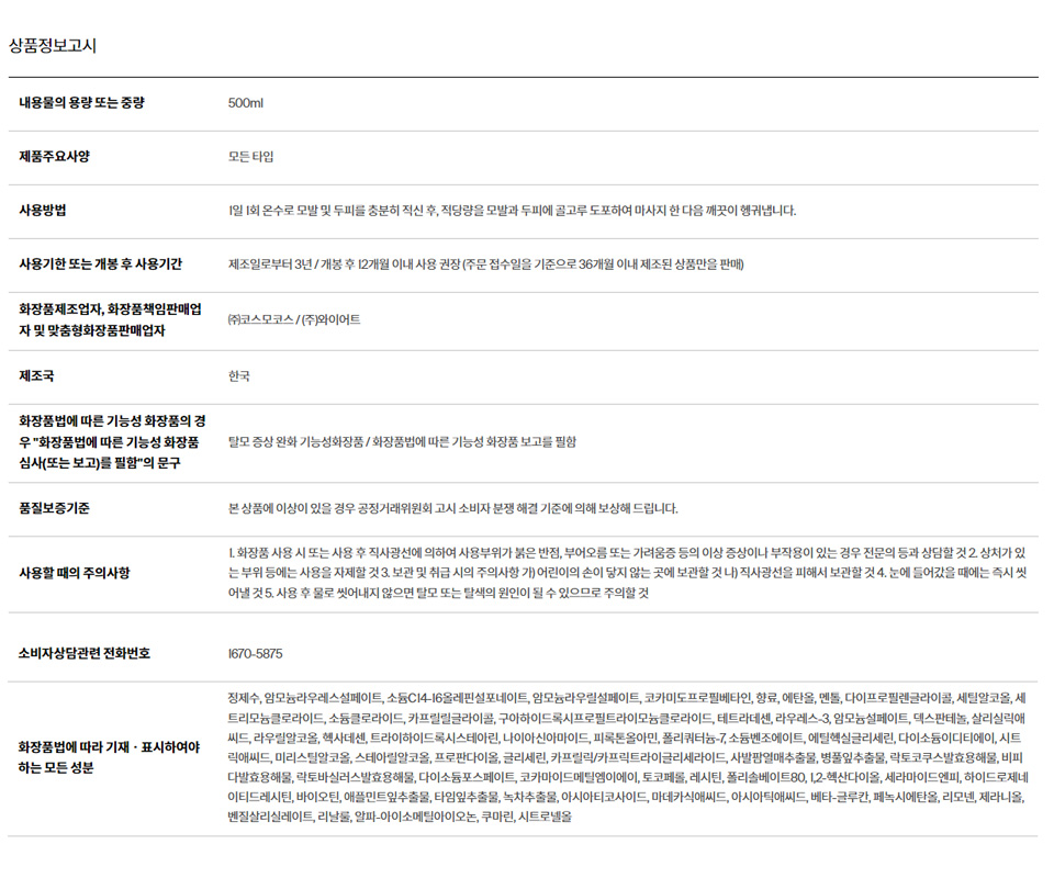 • 「화장품법」에 따라 기재ㆍ표시하여야 하는 모든 성분