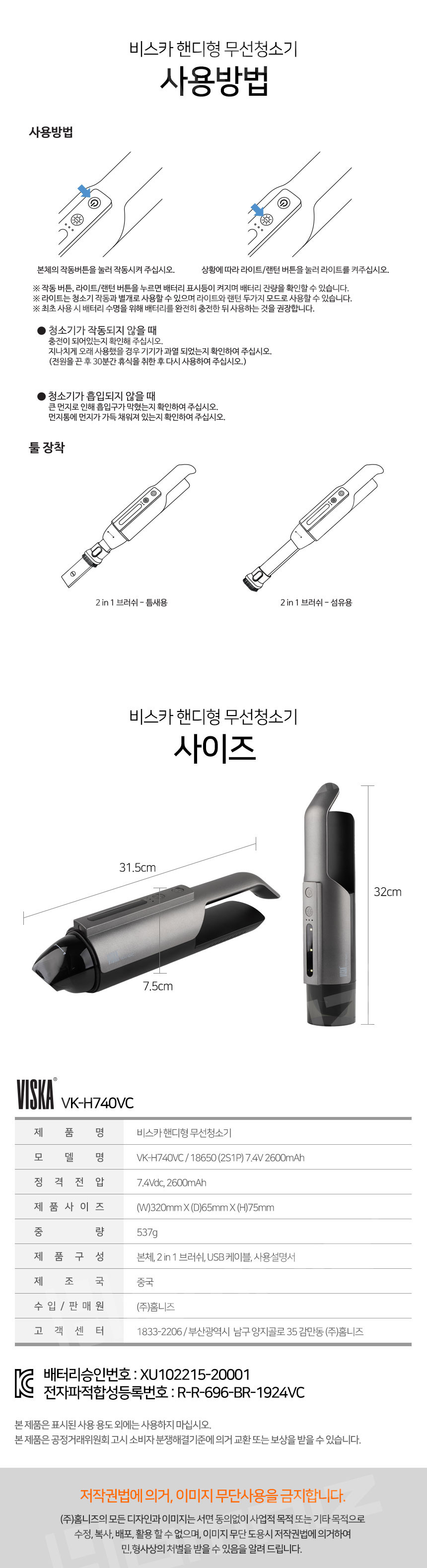 [비스카] 핸디형 무선청소기 VK-H740VC