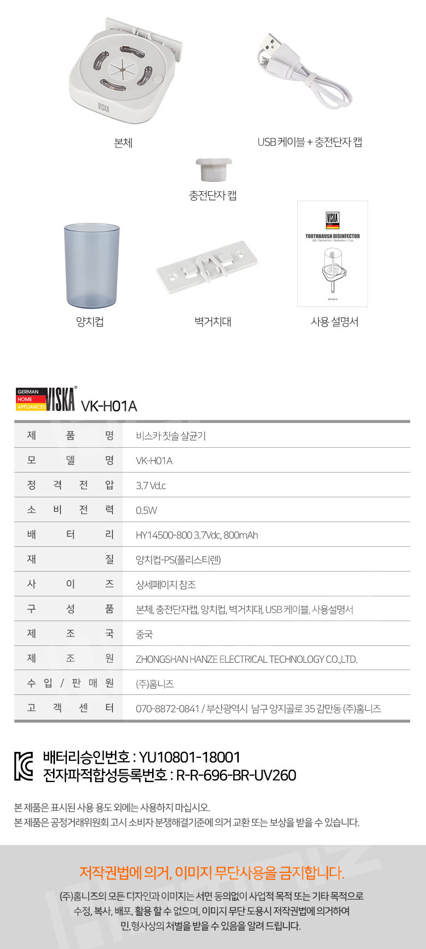 [비스카] 2 in1 무선 칫솔+컵 UV살균기 VK-H01A