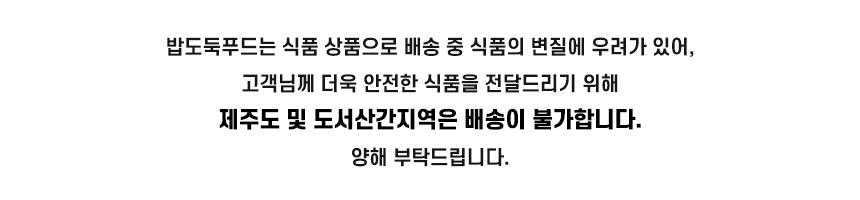 • 신선식품의 경우 재판매가 불가능한 제품 특성상 단순변심 및 개인적 입맛 차이로 인한 반품은 불가능하며 제품 수령 후 문제가 있는 경우 이상부분 사진 촬영하여 수령하신 날짜 기준 2일 이내 연락해주셔야합니다.(기일은 업체별 상이할 수 있으니 수령즉시 연락 부탁드리겠습니다.)