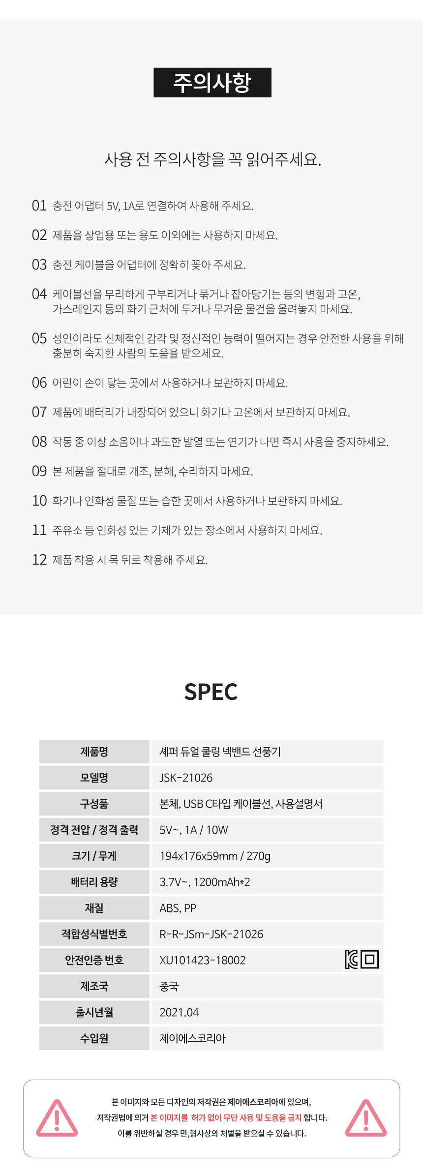 [셰퍼] 듀얼 쿨링 넥밴드 선풍기 JSK-21026