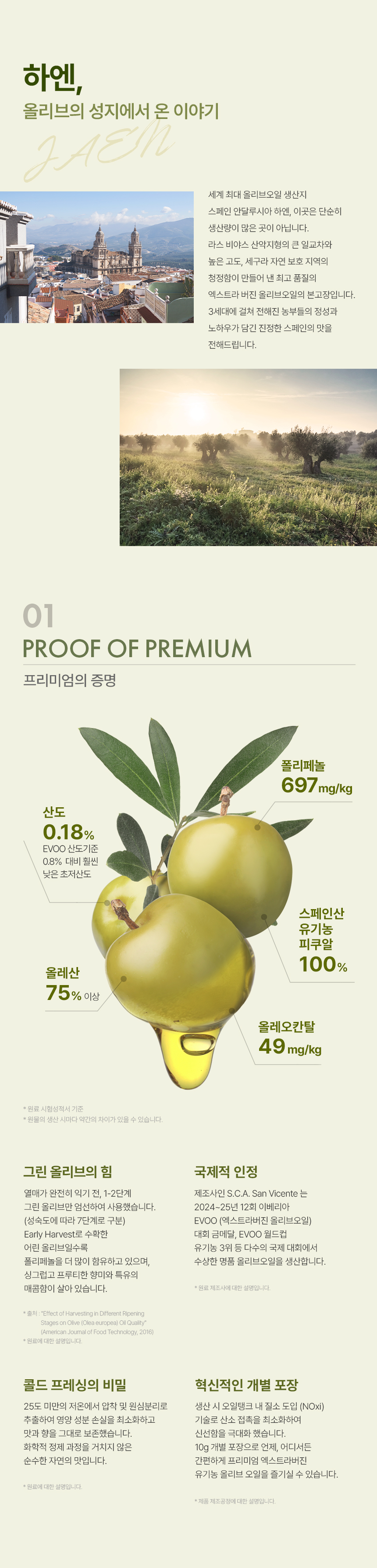 - 올리브오일 : 유기농 엑스트라버진 올리브오일 (스페인산) 100%