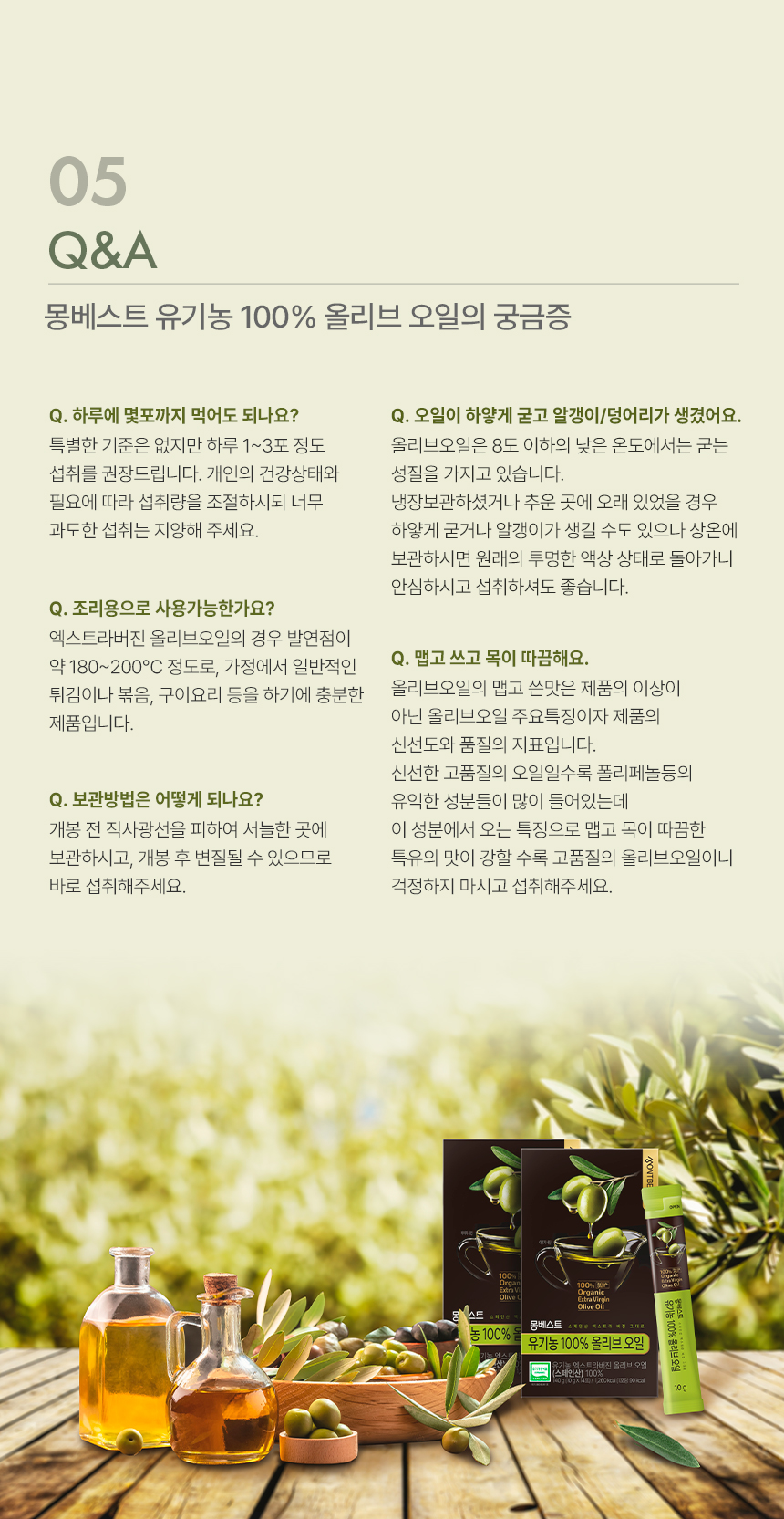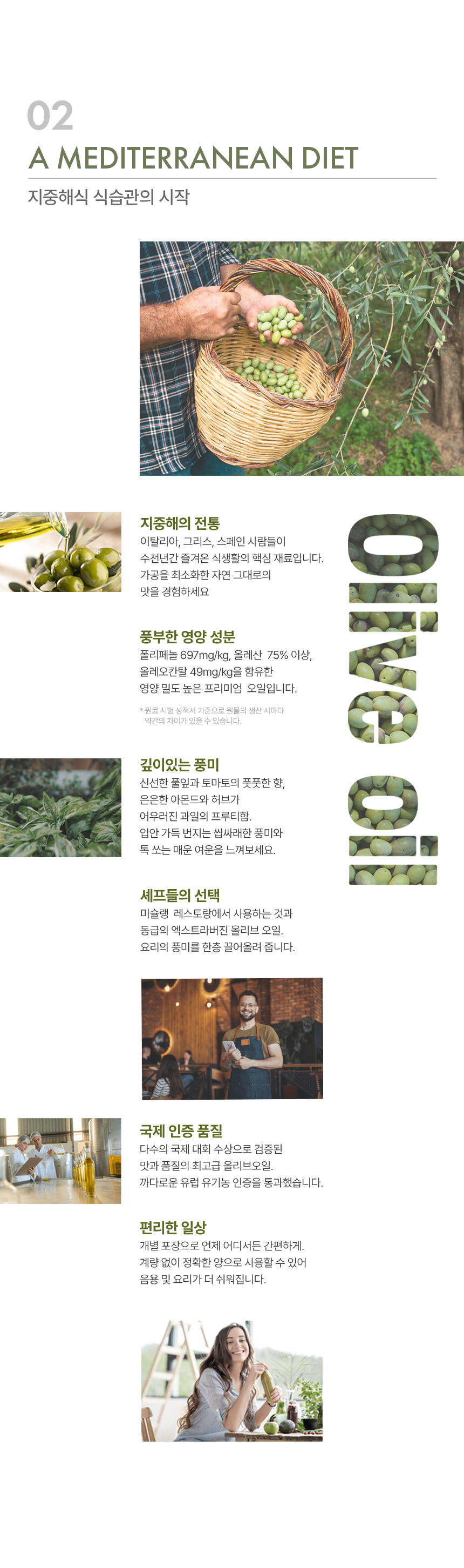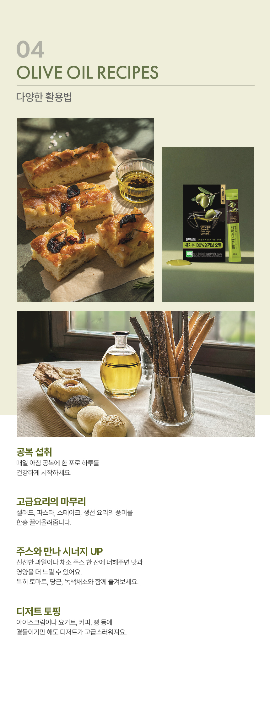 - 올리브오일 : 1팩 내용량 140g (10g X 14포) 기준