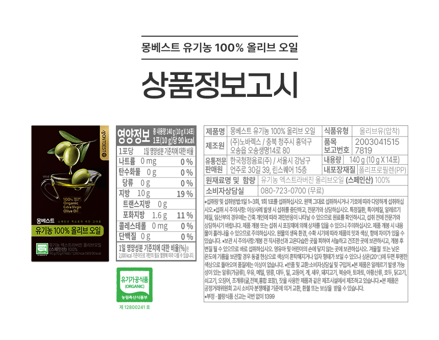 - 올리브오일 : 몽베스트 유기농 100% 올리브 오일