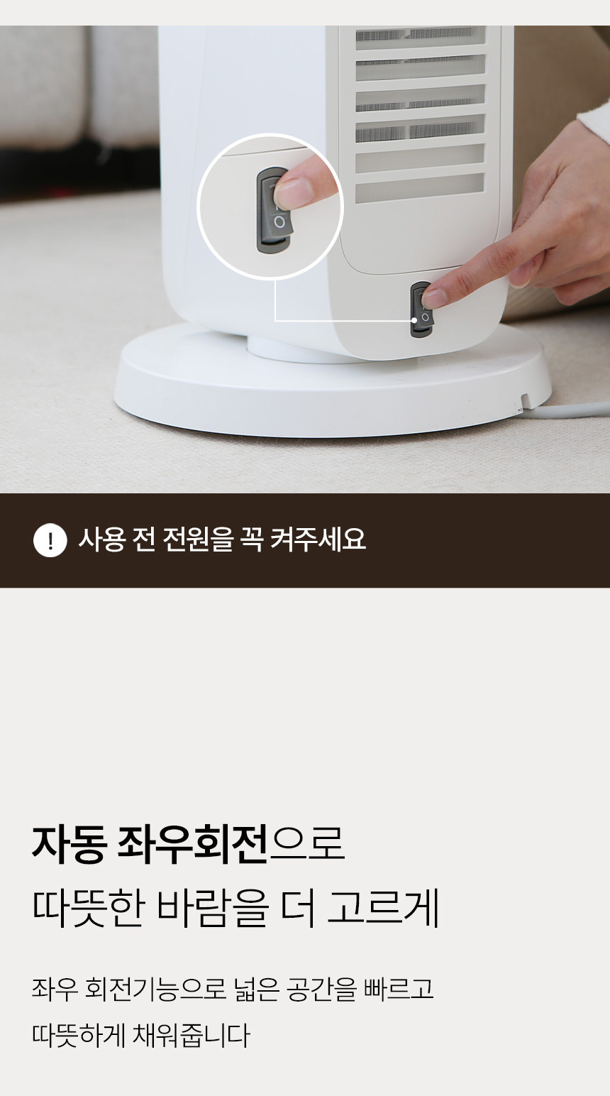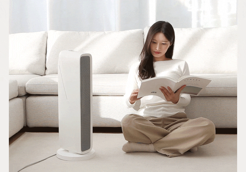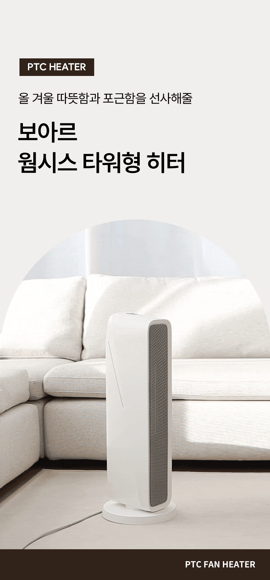 보아르 웜시스 타워형 슬림 전기 온풍기 스탠드 PTC 히터 가정용 거실 사무실 원룸 자동회전 타이머 리모컨 저소음