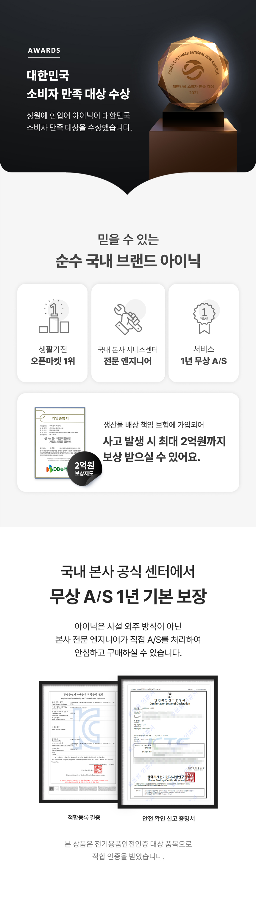 • 제조사 : 아이닉 협력사 수입자 : 아이닉