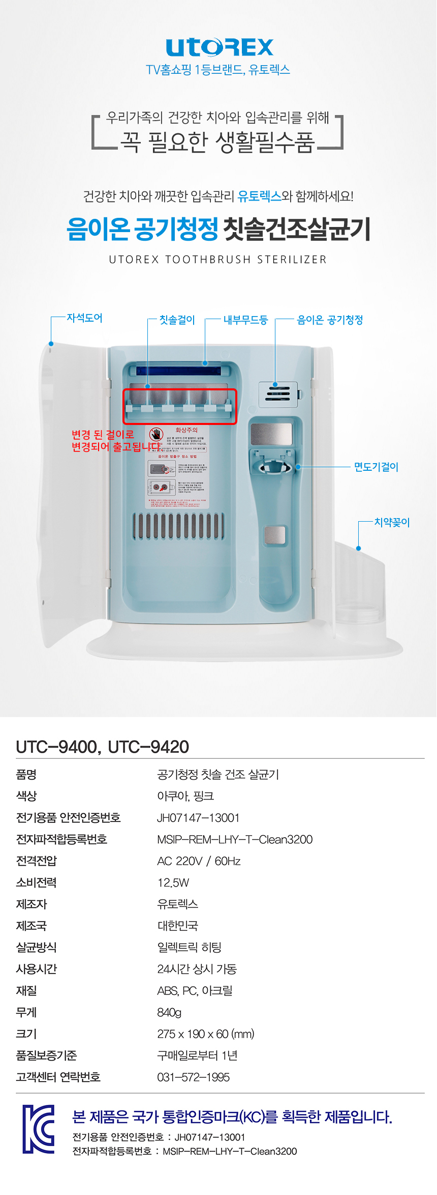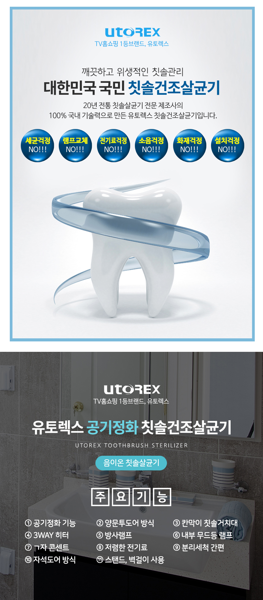 [유토렉스] 음이온 공기청정 칫솔건조살균기 UTC-9400