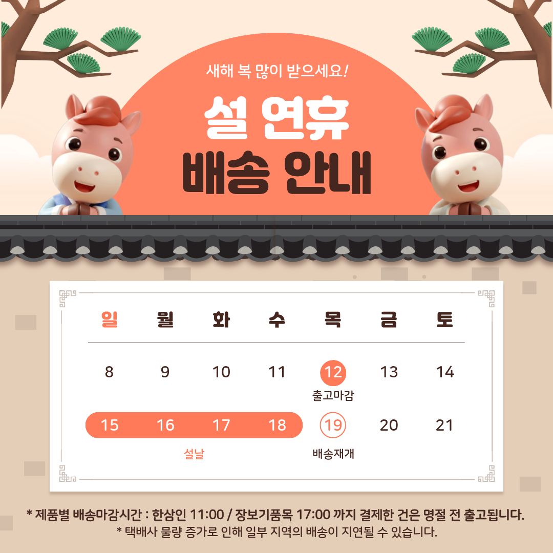 • 일부 주문상품 또는 예약상품의 경우 기본 배송일 외에 추가 배송 소요일이 발생될 수 있습니다.