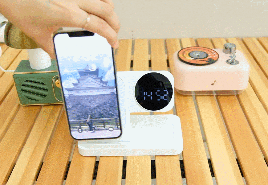[Xtra] 3개 디바이스 동시 충전 고속 무선 충전 거치대 탁상시계 겸용